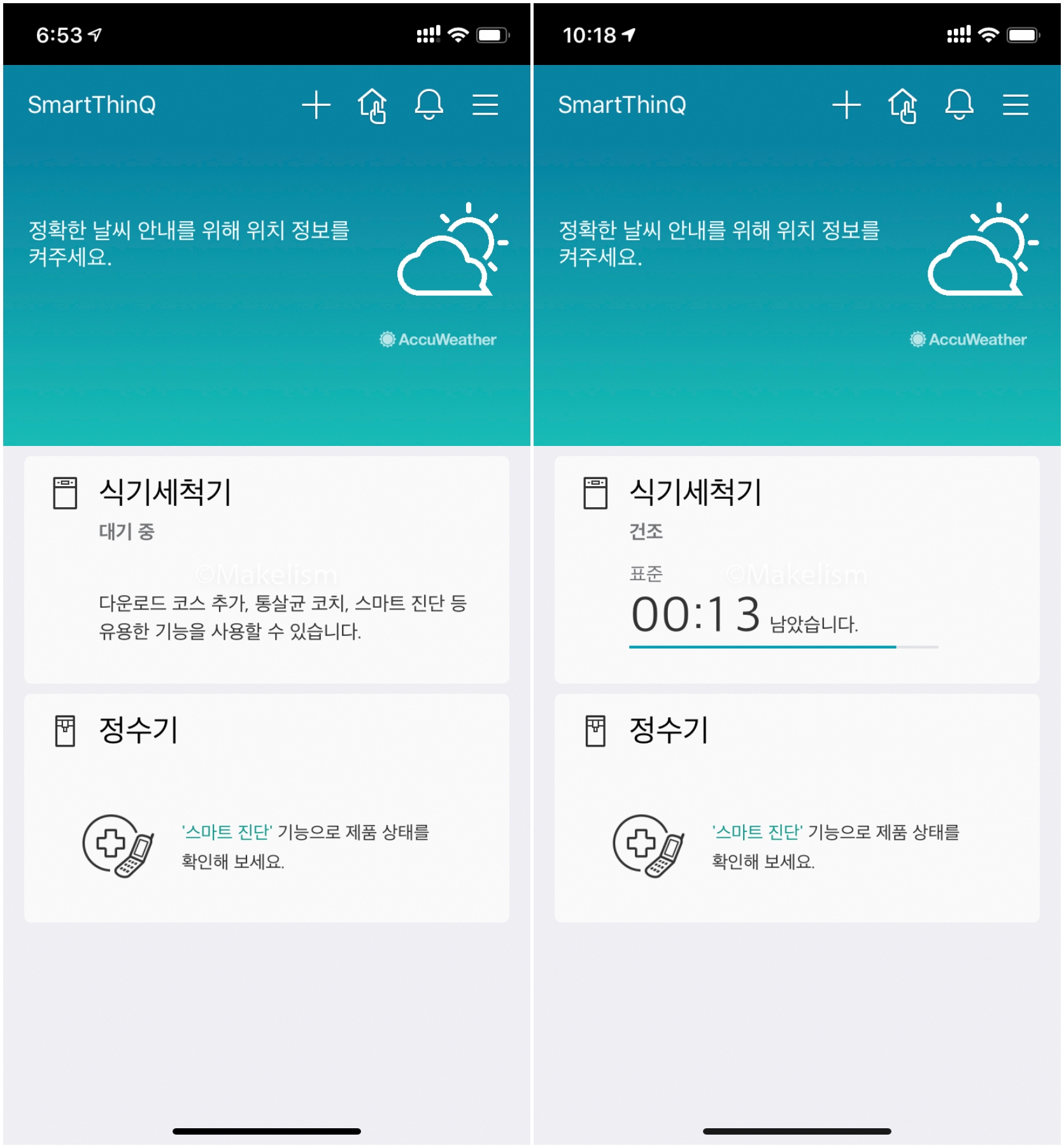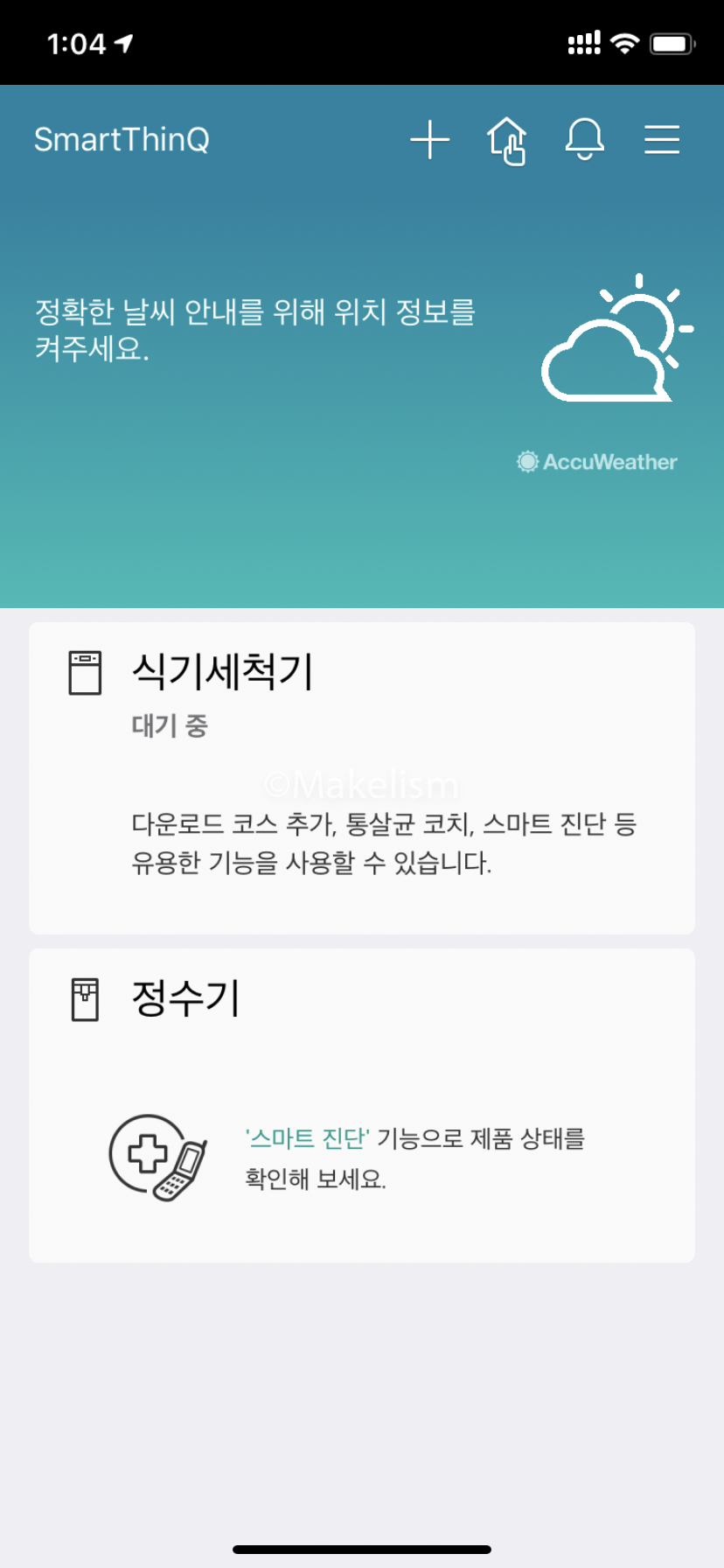 미리 세팅했던 SmartThingQ 앱 준비. (아래)