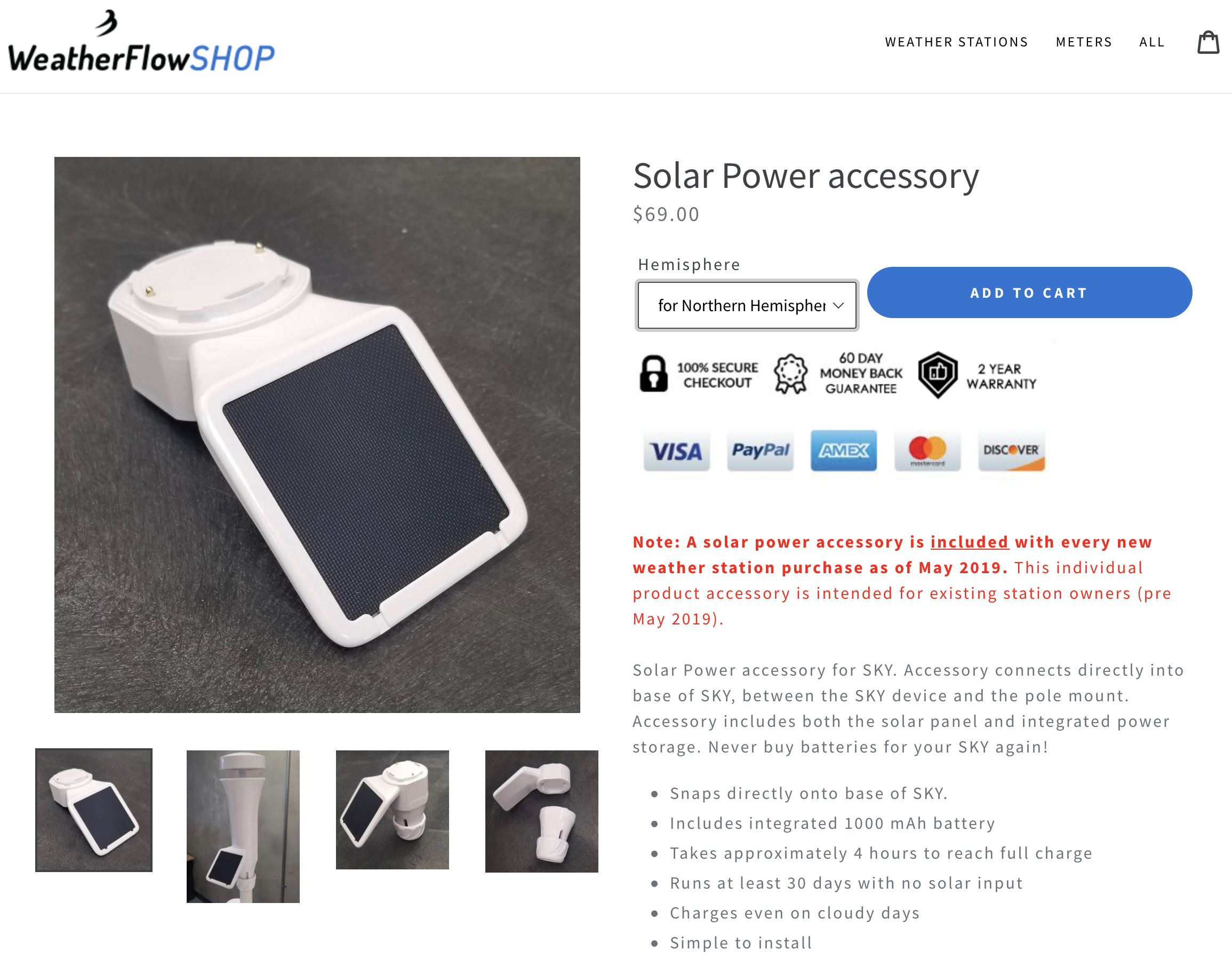 WeatherFlow Solar Power Accessory 할인 가격은 약 72,000원으로.