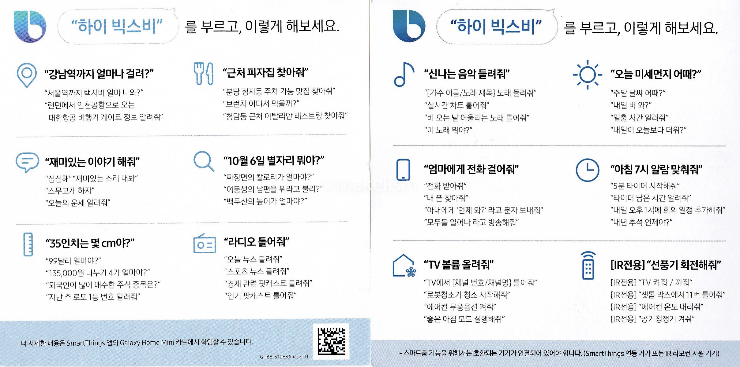 갤홈 미니의 주 입력 수단인 음성 명령 예시와. (아래)