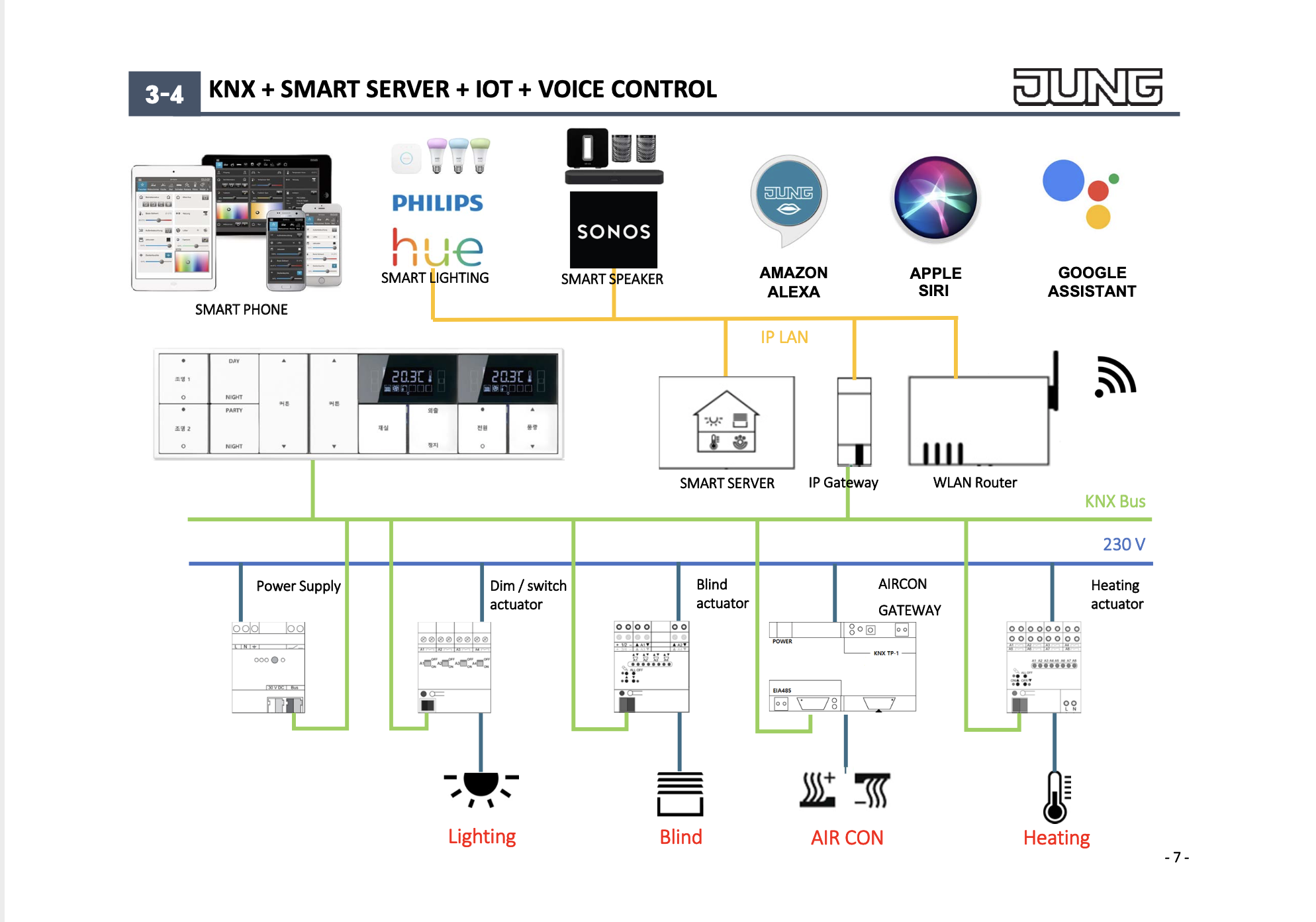 신뢰도를 위해 소수 KNX 인증 장치들만 연동할 수 있는 등. (아래)
