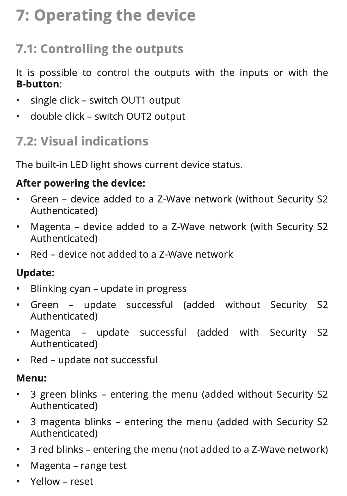 B 버튼을 사용한 전원 ON, OFF 및 LED 상태 및, (아래)