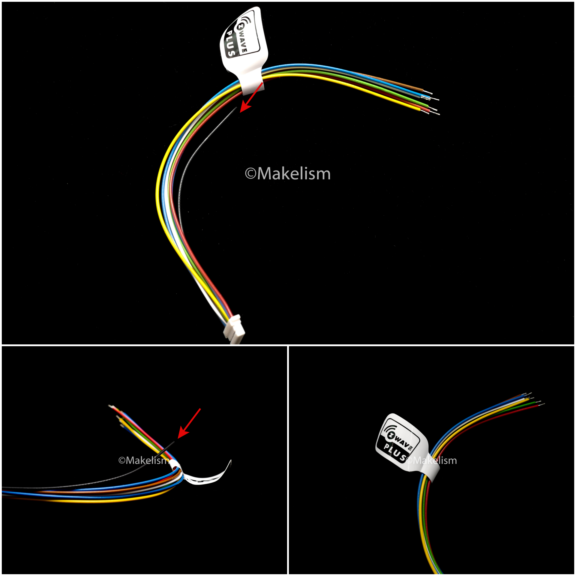 Z-Wave Plus, 안테나(빨강 화살표)와 케이블이 달린 커넥터. (아래)