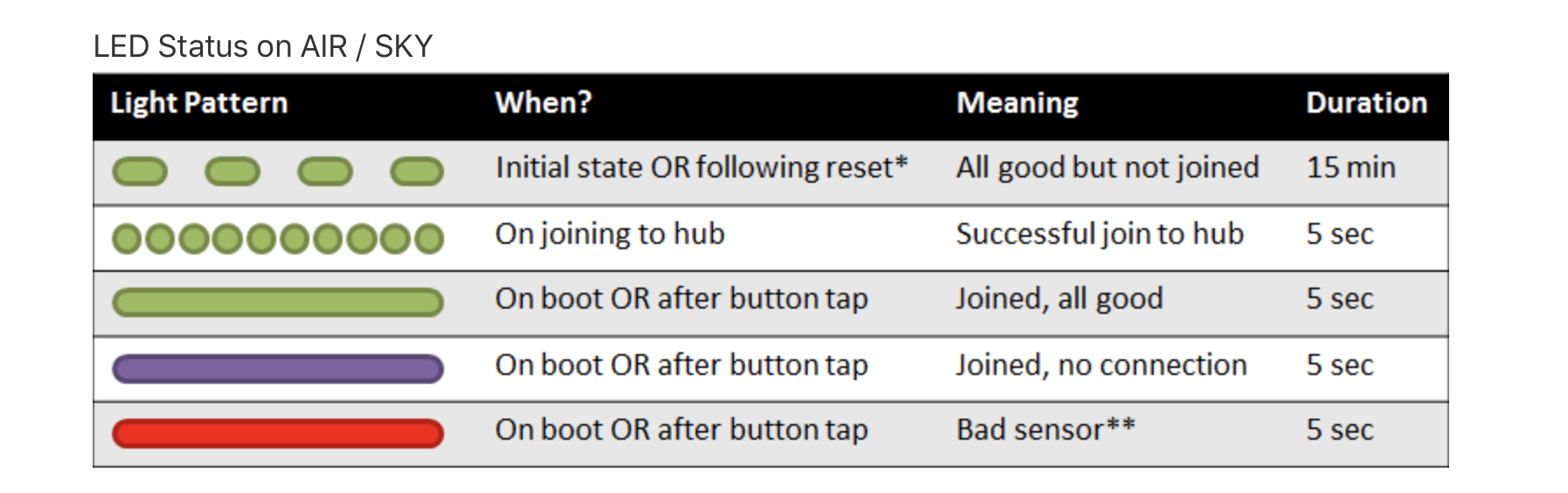 AIR, SKY LED 상태. (아래)
