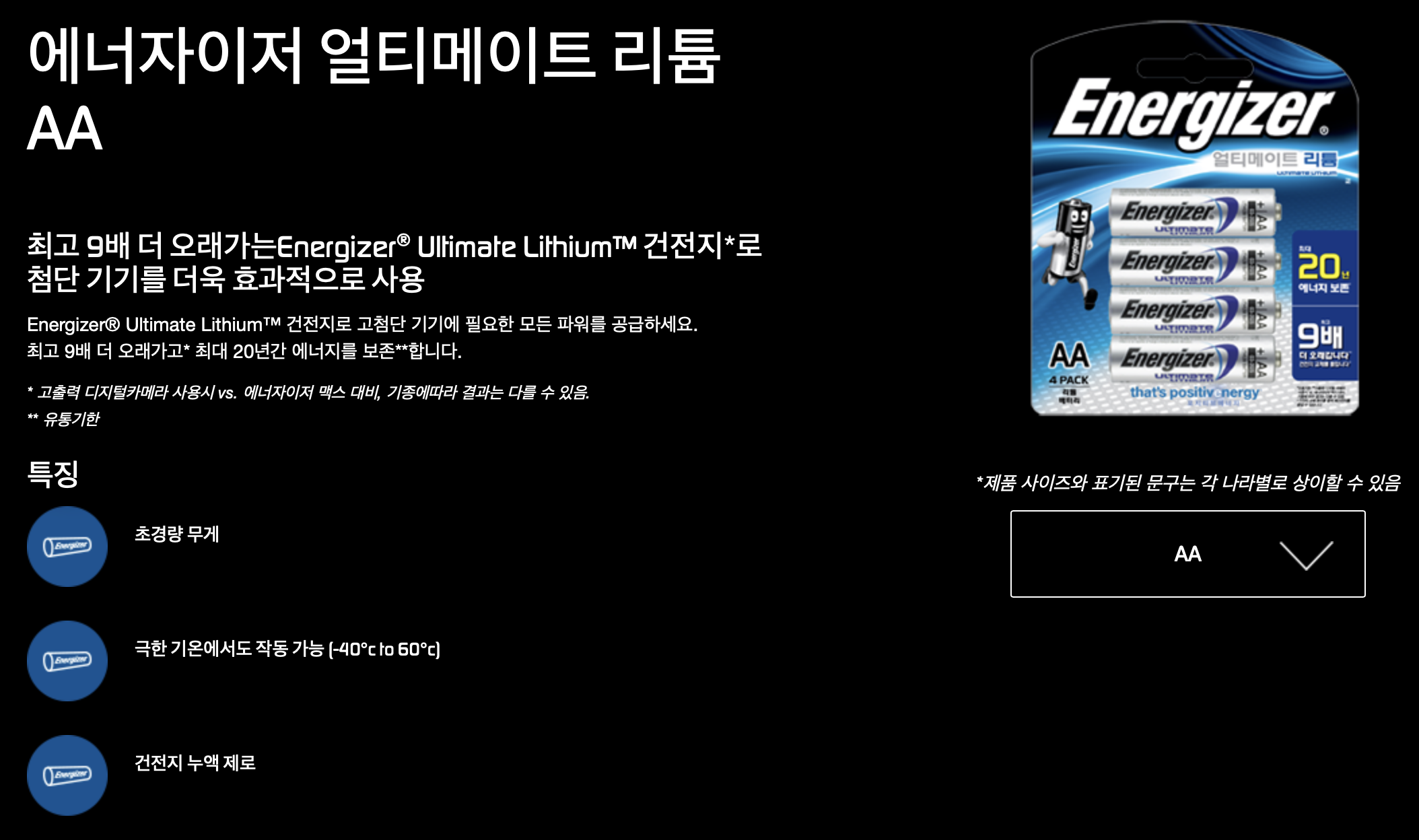 에너자이저 얼티메이트 리튬 AA 4개가 들어가는.