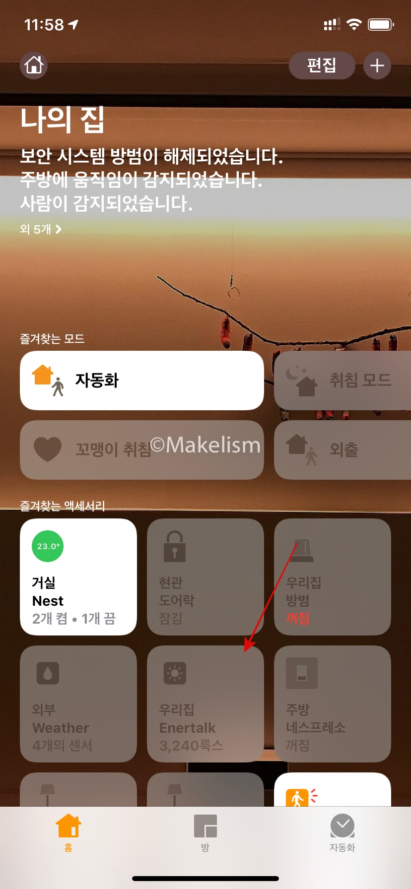 현재 우리 집 전기 사용량을 홈킷(HomeKit)으로 보며. (아래)
