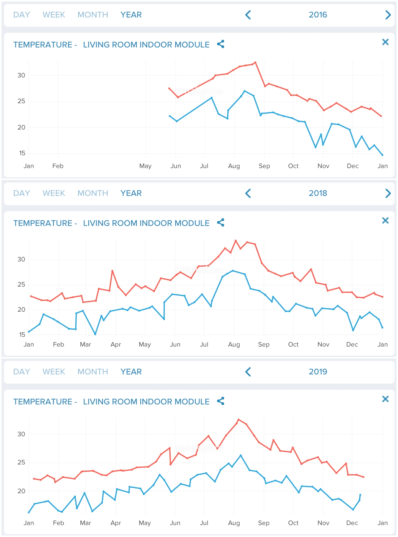 Rain Gauge, Wind Gauge, Outdoor, Indoor Module의 데이터를 동시에 볼 수 없어.