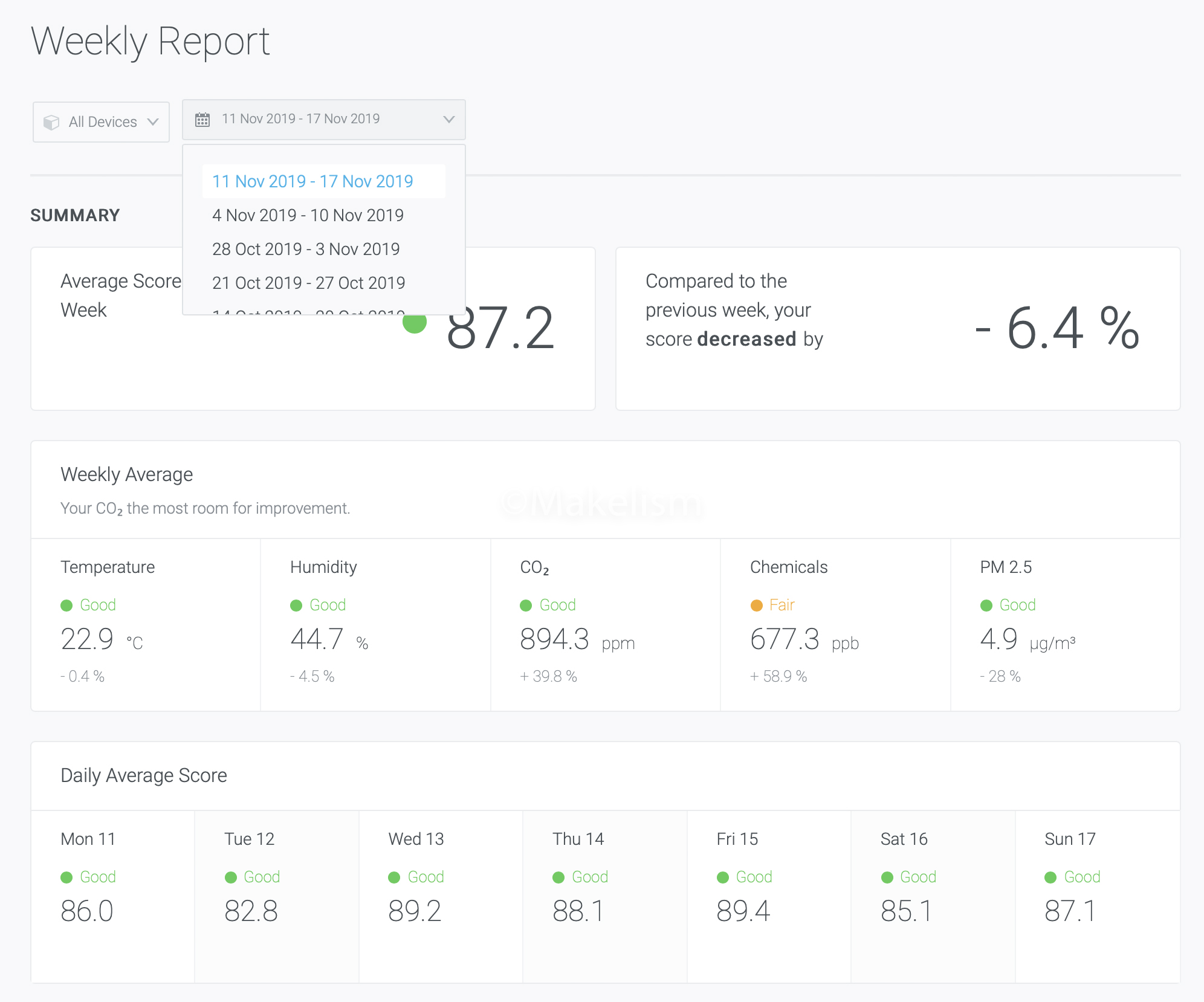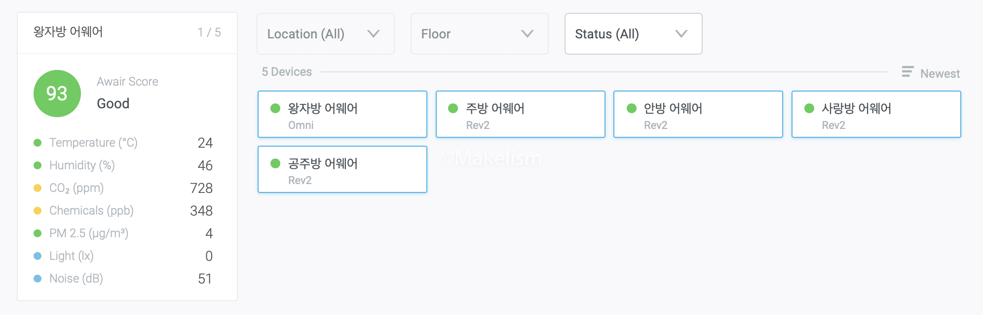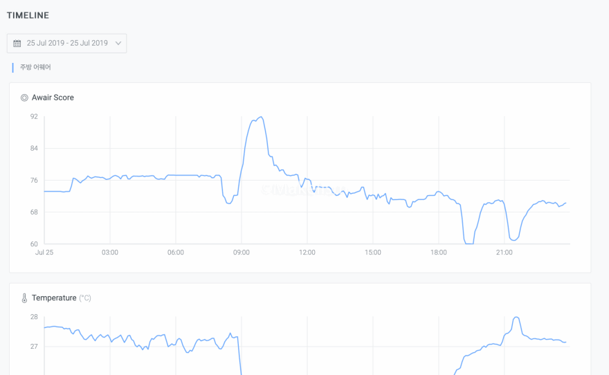 공기 관리 솔루션 어웨어 옴니 대시보드 (Awair Omni Dashboard).
