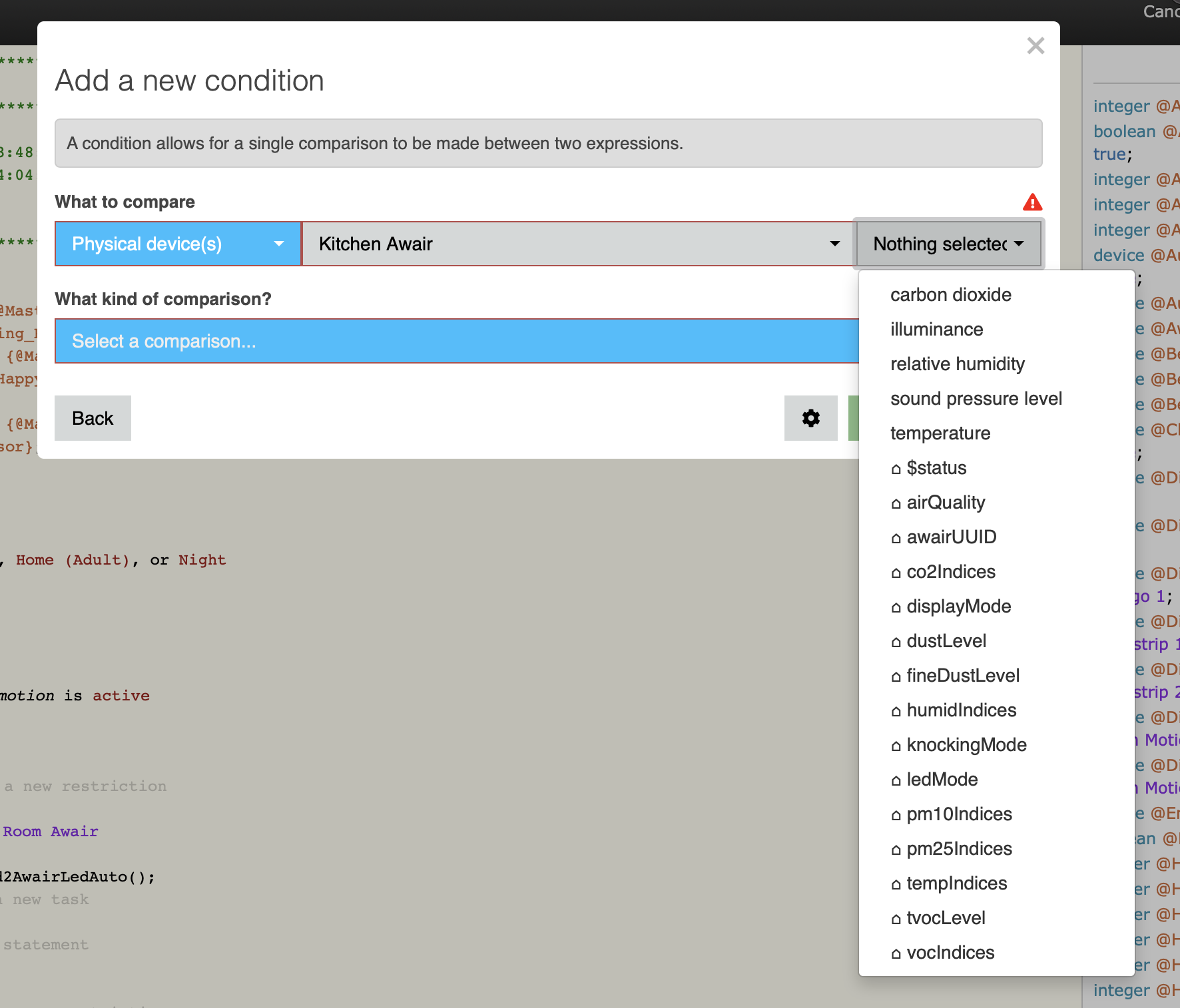 "carbonDioxideThreshold"는 방의 특성에 따라 여유 있게 잡아야 노티 폭탄 안 옴.