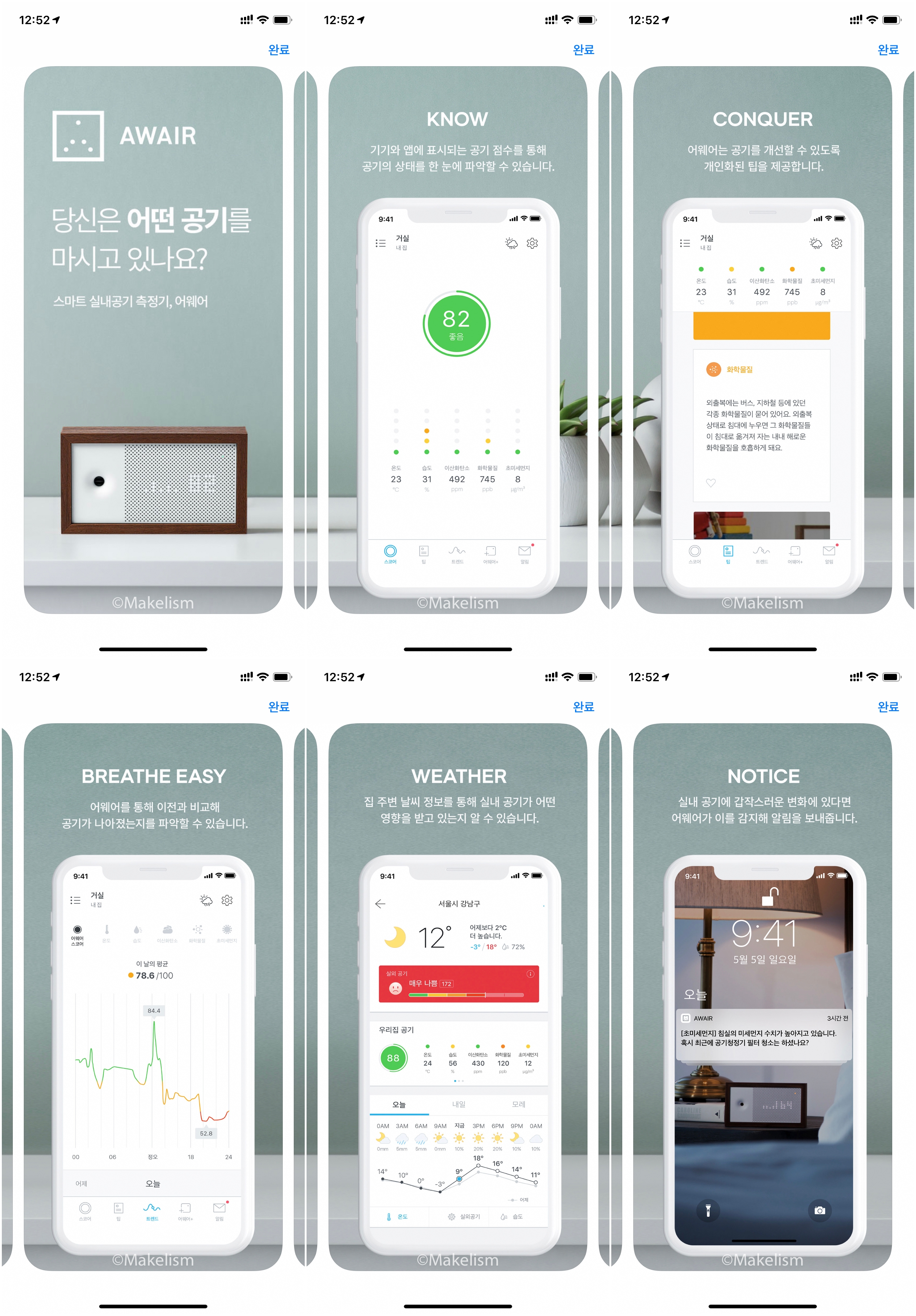 온도, 습도, 이산화탄소, 화학물질, 초미세먼지를 점수화한 어웨어 스코어 기반으로.