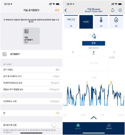 홈앱과 다르게 공식 앱(Blueair Friend)에서는.
