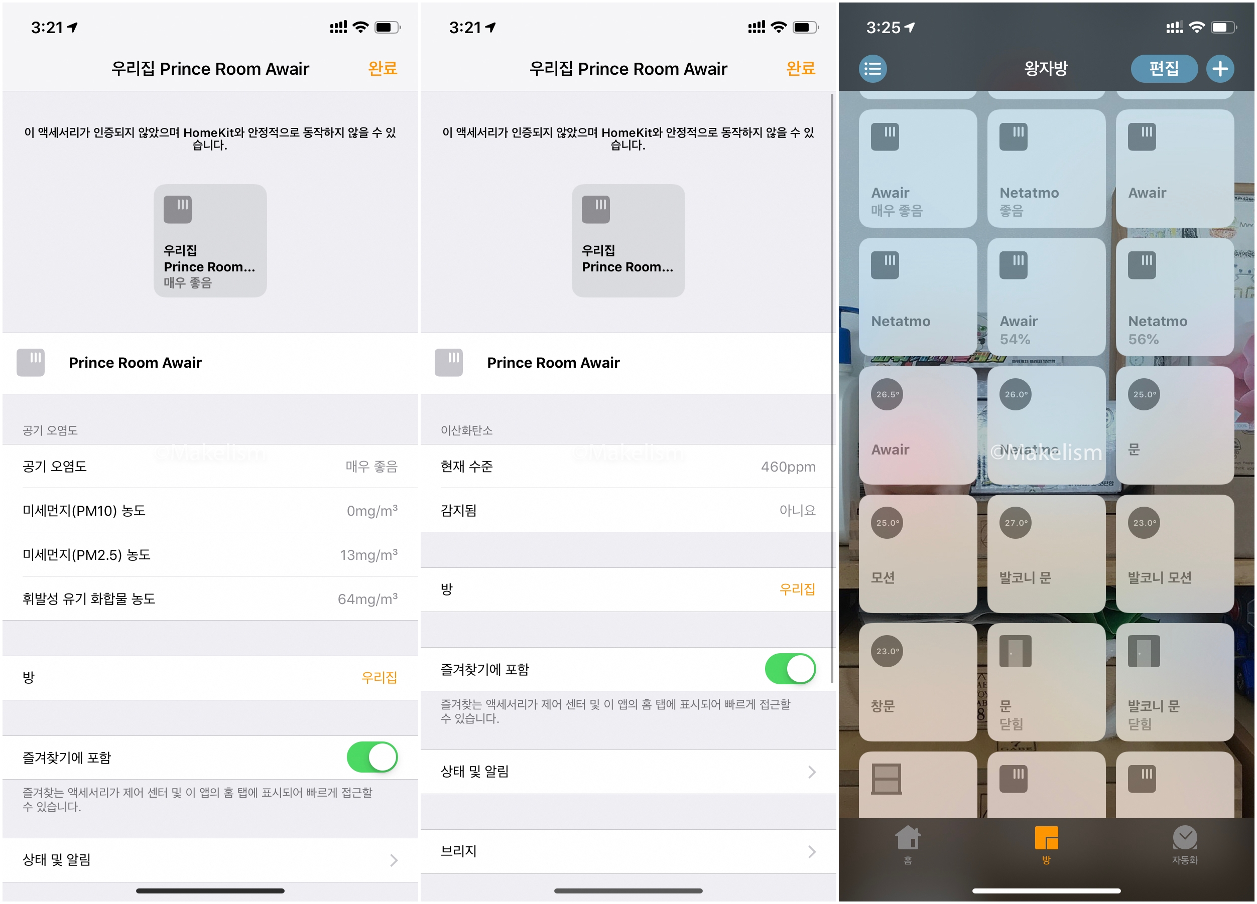 애플 홈킷(HomeKit)에 직접 연동하고. (아래)