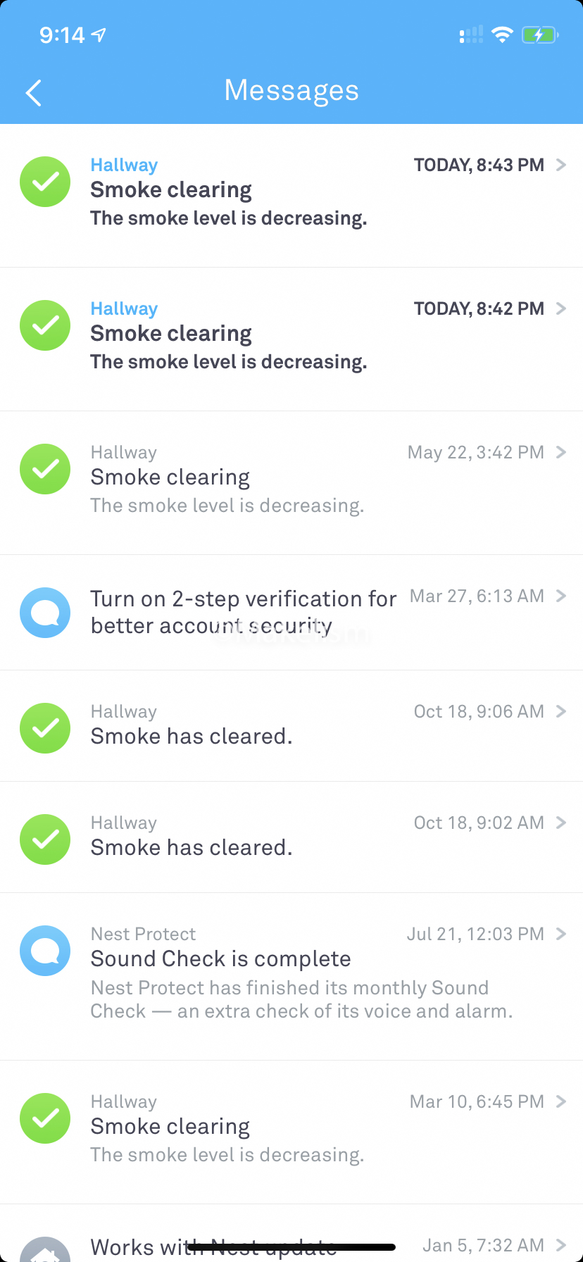 1.5미터 거리의 네스트 프로텍트(Nest Protect)가. (아래)