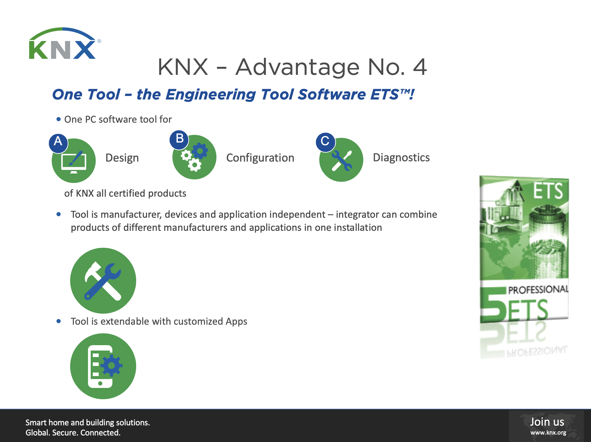 전 세계의 주택 및 빌딩 제어 분야에서 KNX를 이용하고 있습니다. 수백만의 KNX 설비가 유럽 뿐만 아니라 아시아 및 미주 등에서 사용되고 있는 현환을 통해, KNX 식 접근법의 장점을 손쉽게 살펴볼 수 있습니다. 현재 전 세계적으로 400여 곳이 넘는 KNX 회원사들이 KNX 인증을 받은 7,000여 종의 다양한 애플리 케이션 도메인 제품군을 제공하고 있습니다. 현재 190여 개 국가 내의 설립된 협회, 70,000여 곳의 파트너 업 체들, 400여 곳의 글로벌 KNX 트레이닝 센터가 함께 하고 있습니다.