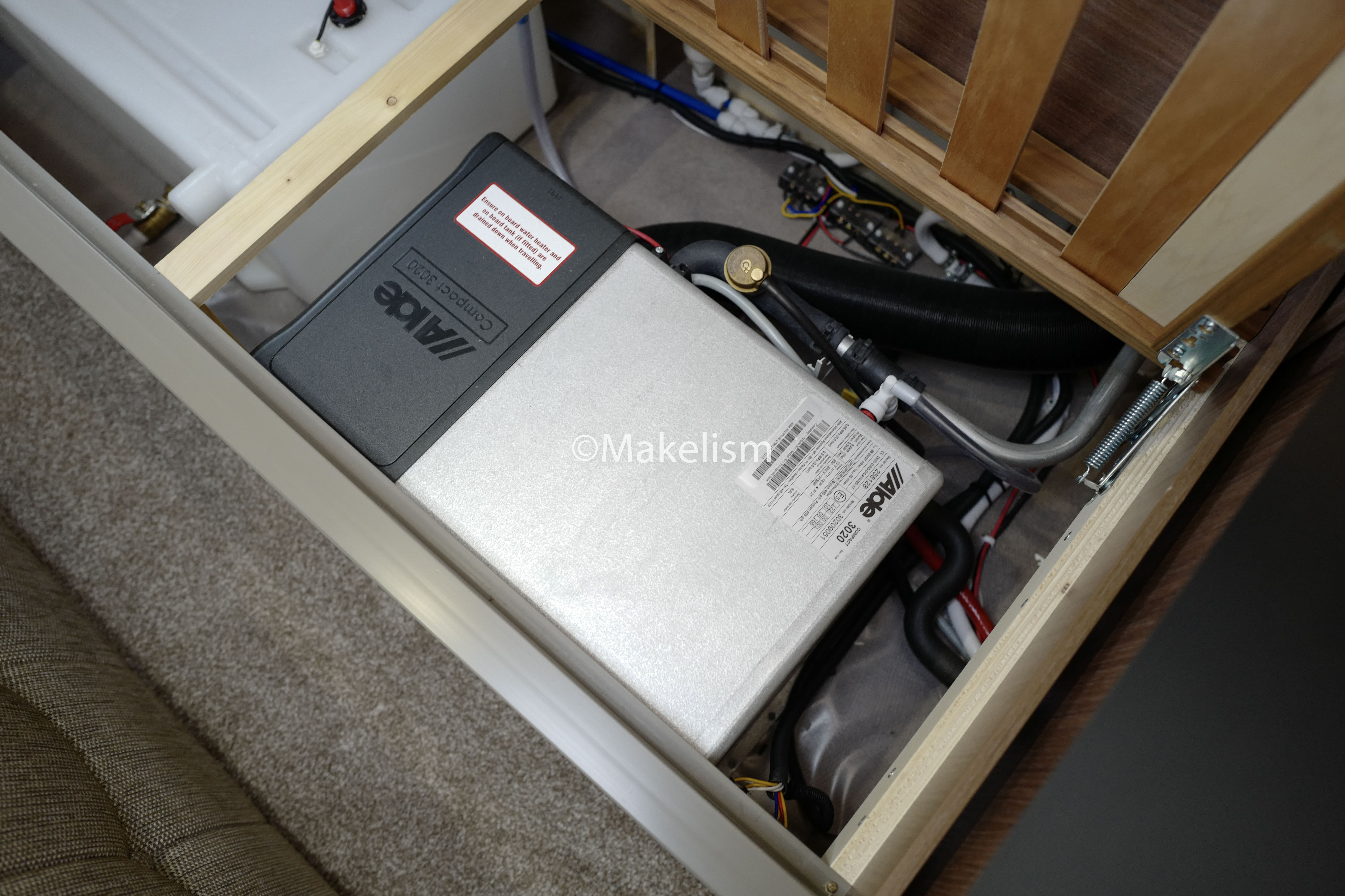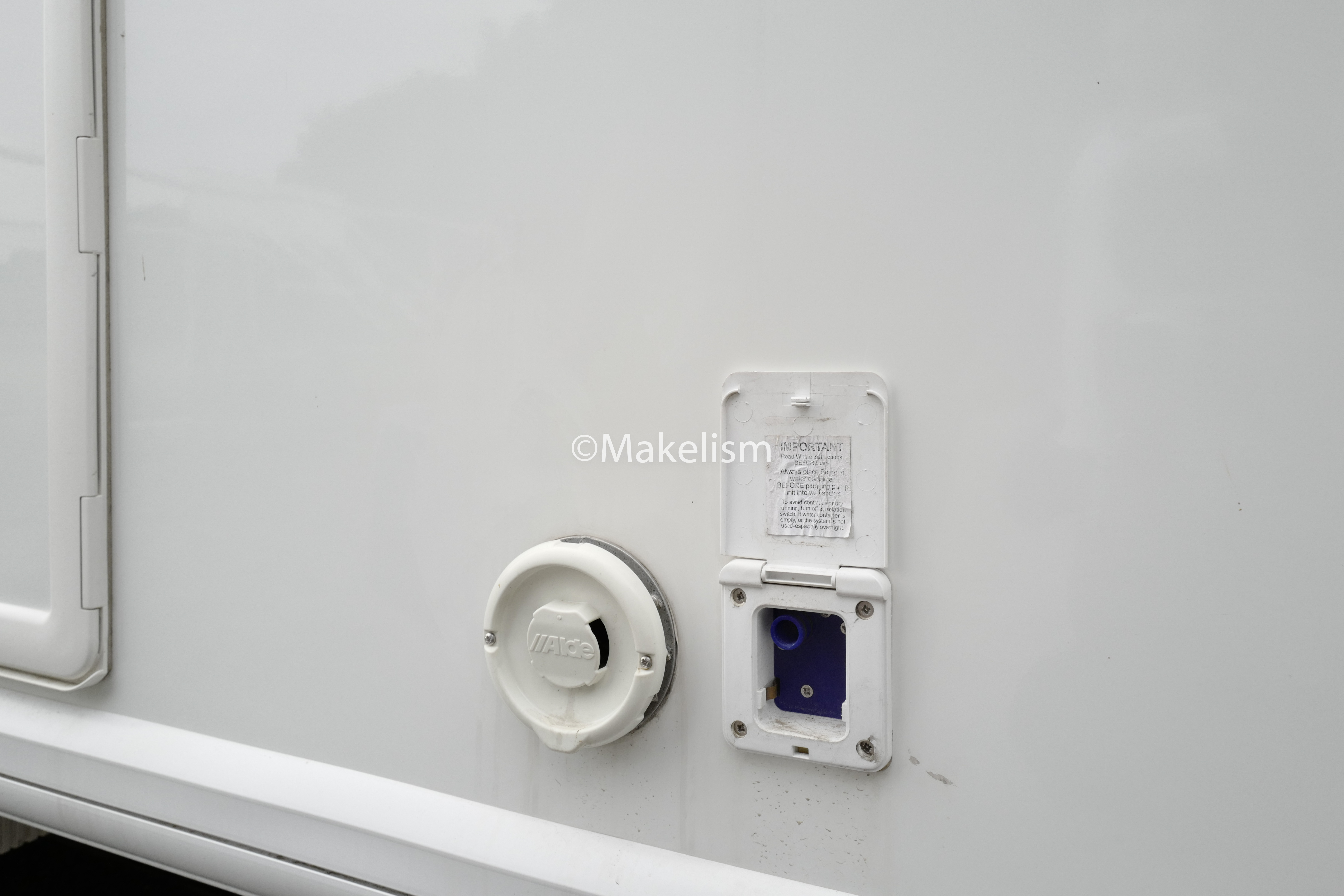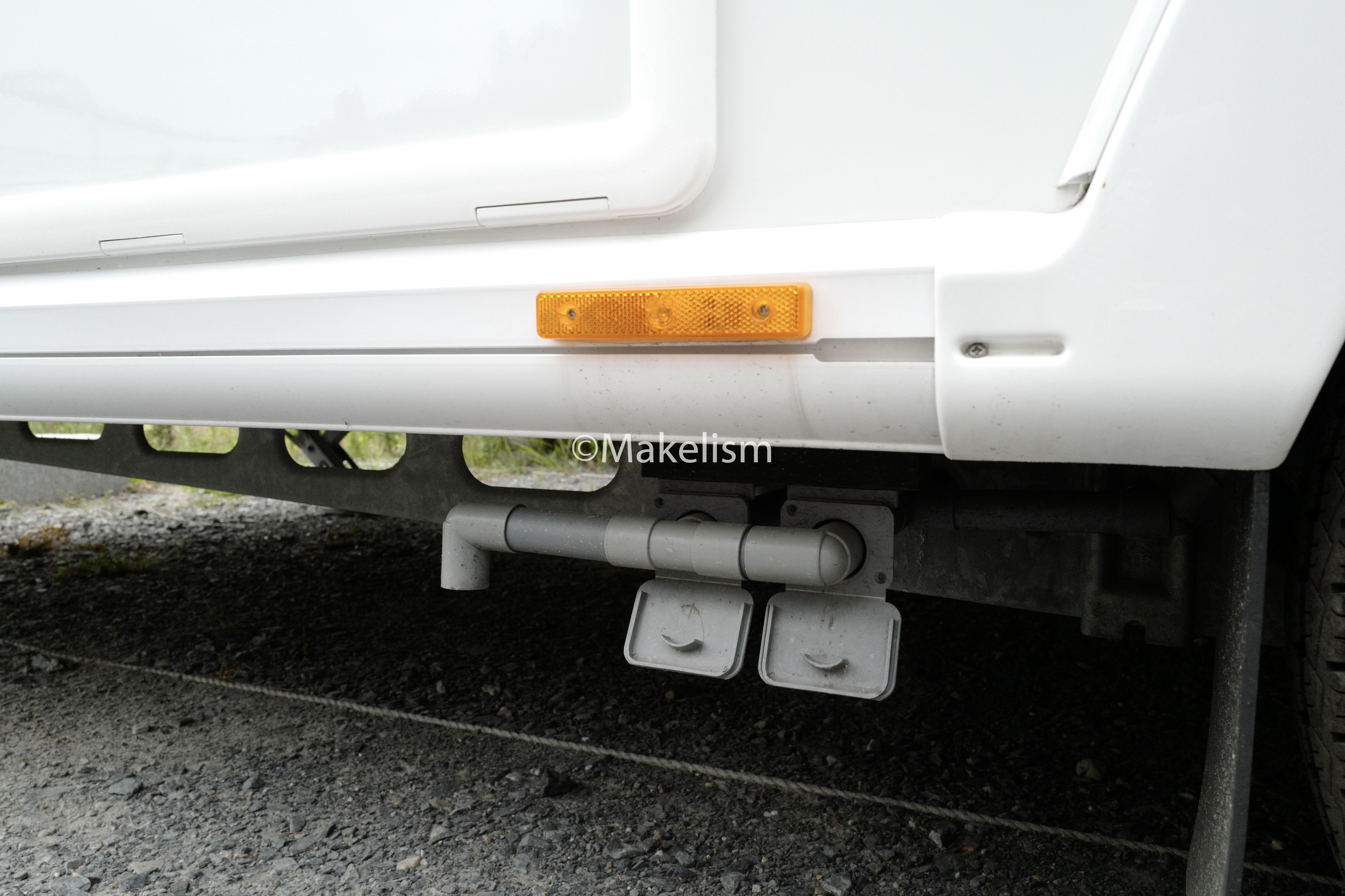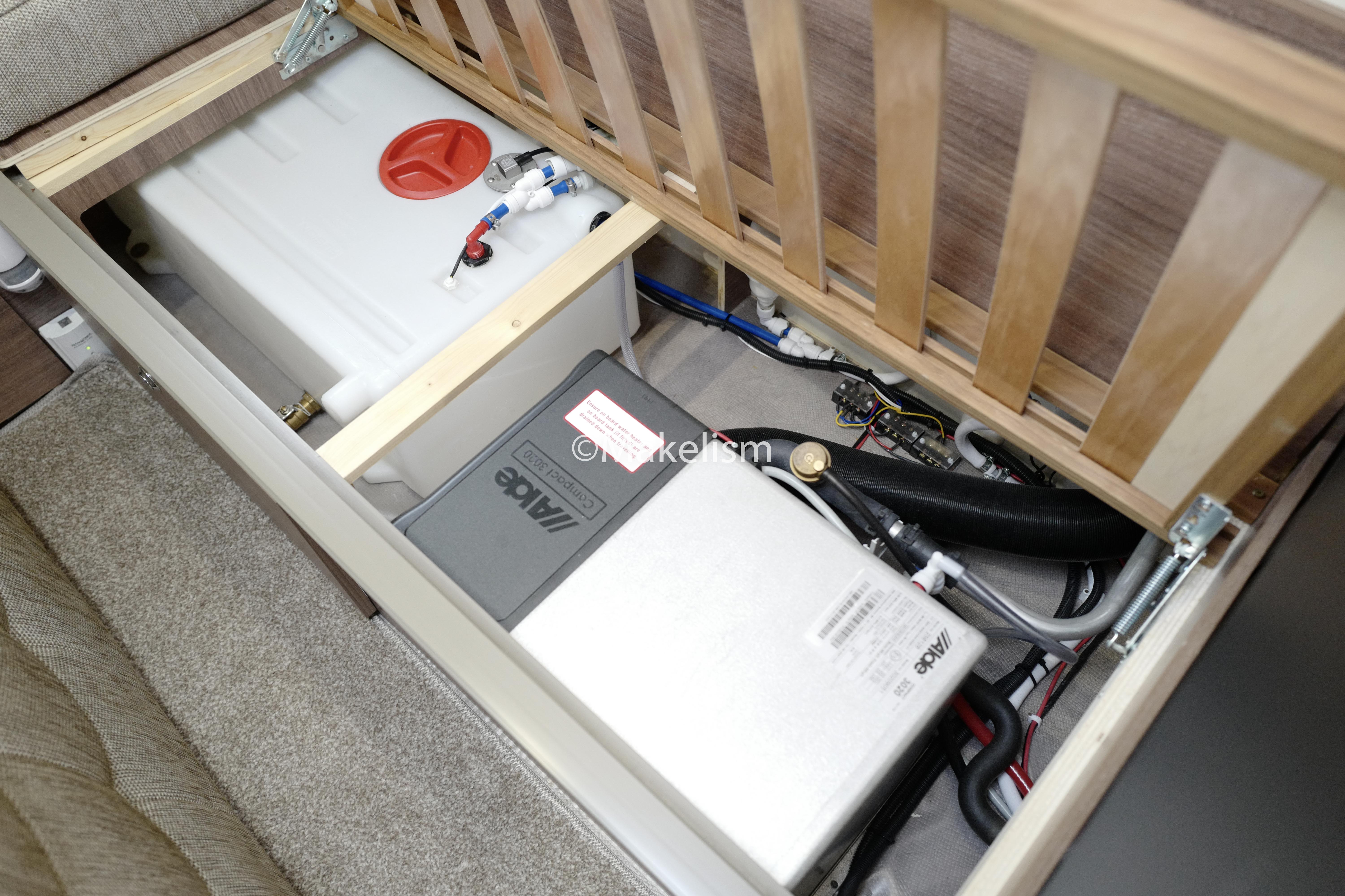 카라반 내부의 75L 물탱크 수위가 일정 수준 밑으로 내려가면. (아래)