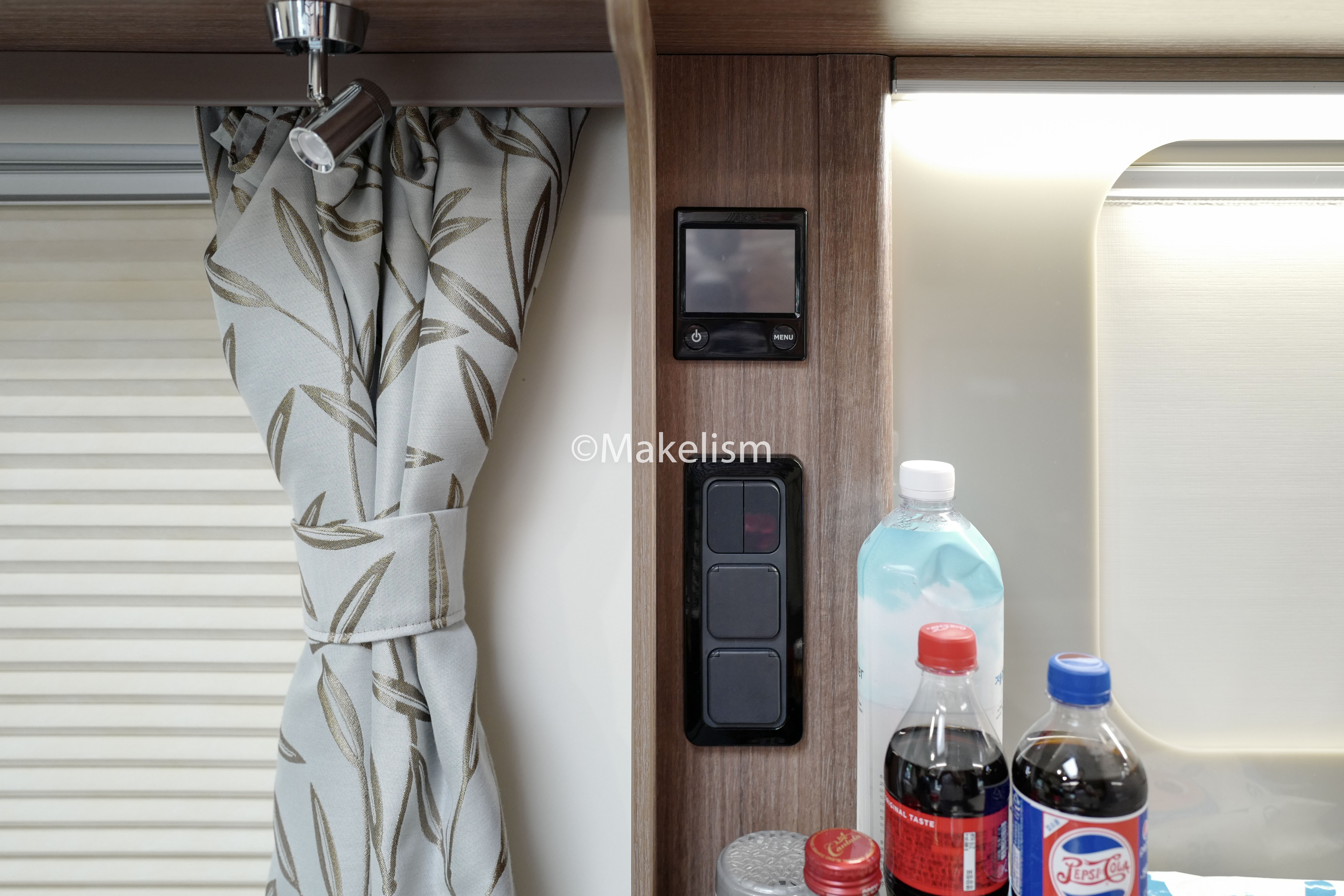 카라반 내부 및 장치.