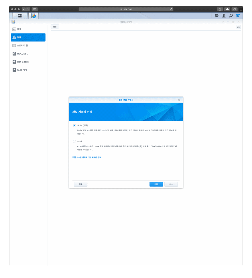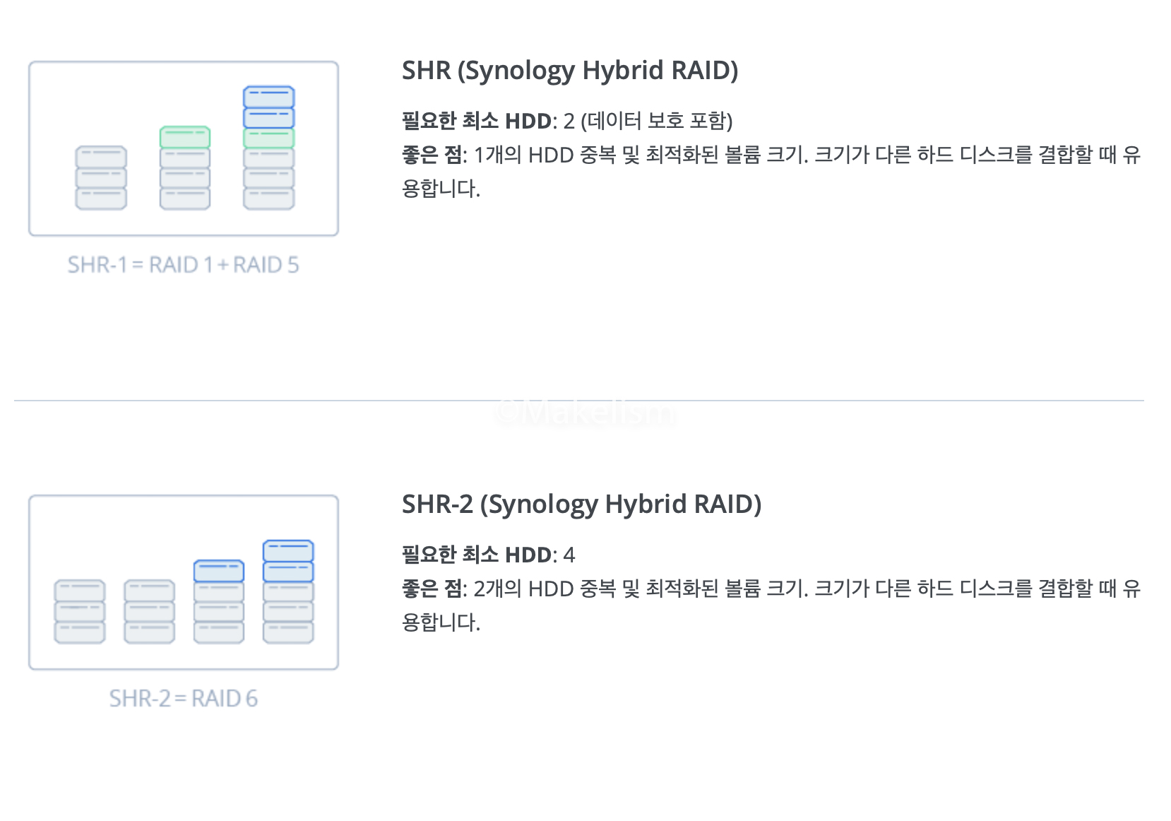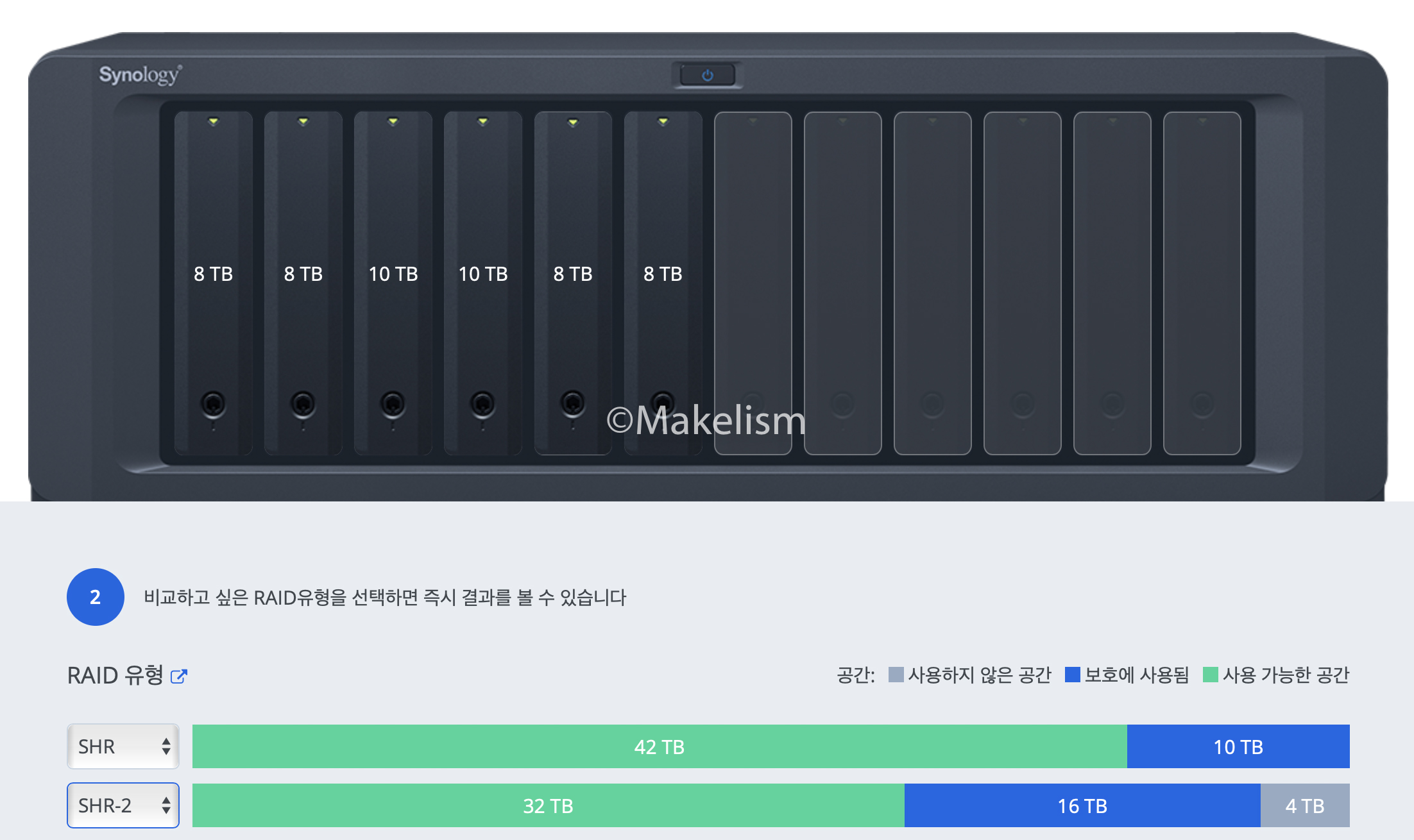 가용 공간이 많은 SHR을 선택했다. (아래)