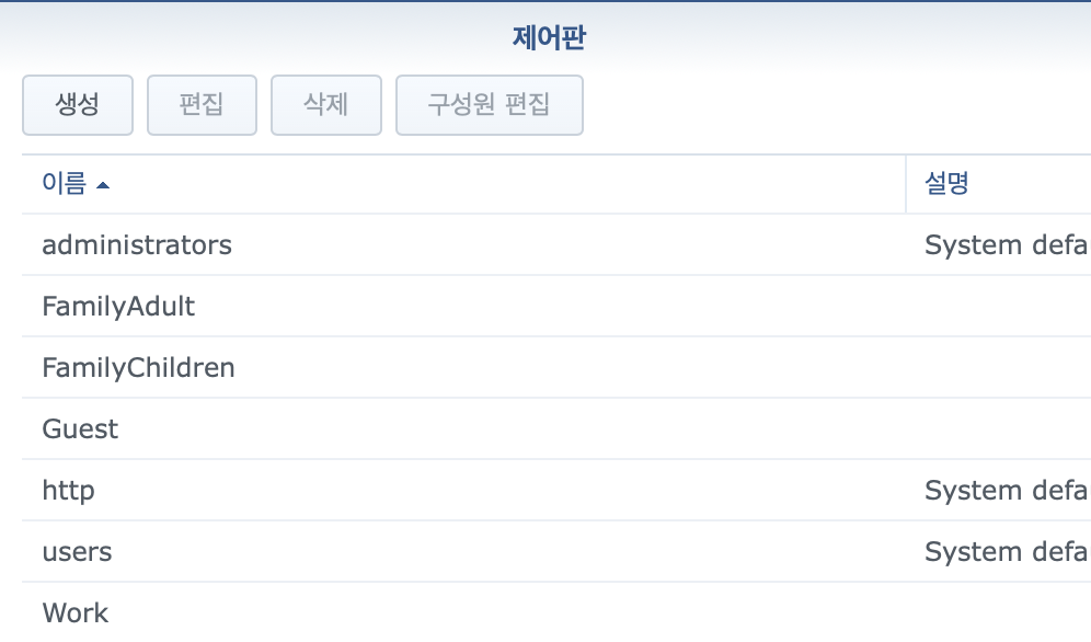 새로 세팅한 그룹 구성과. (아래)