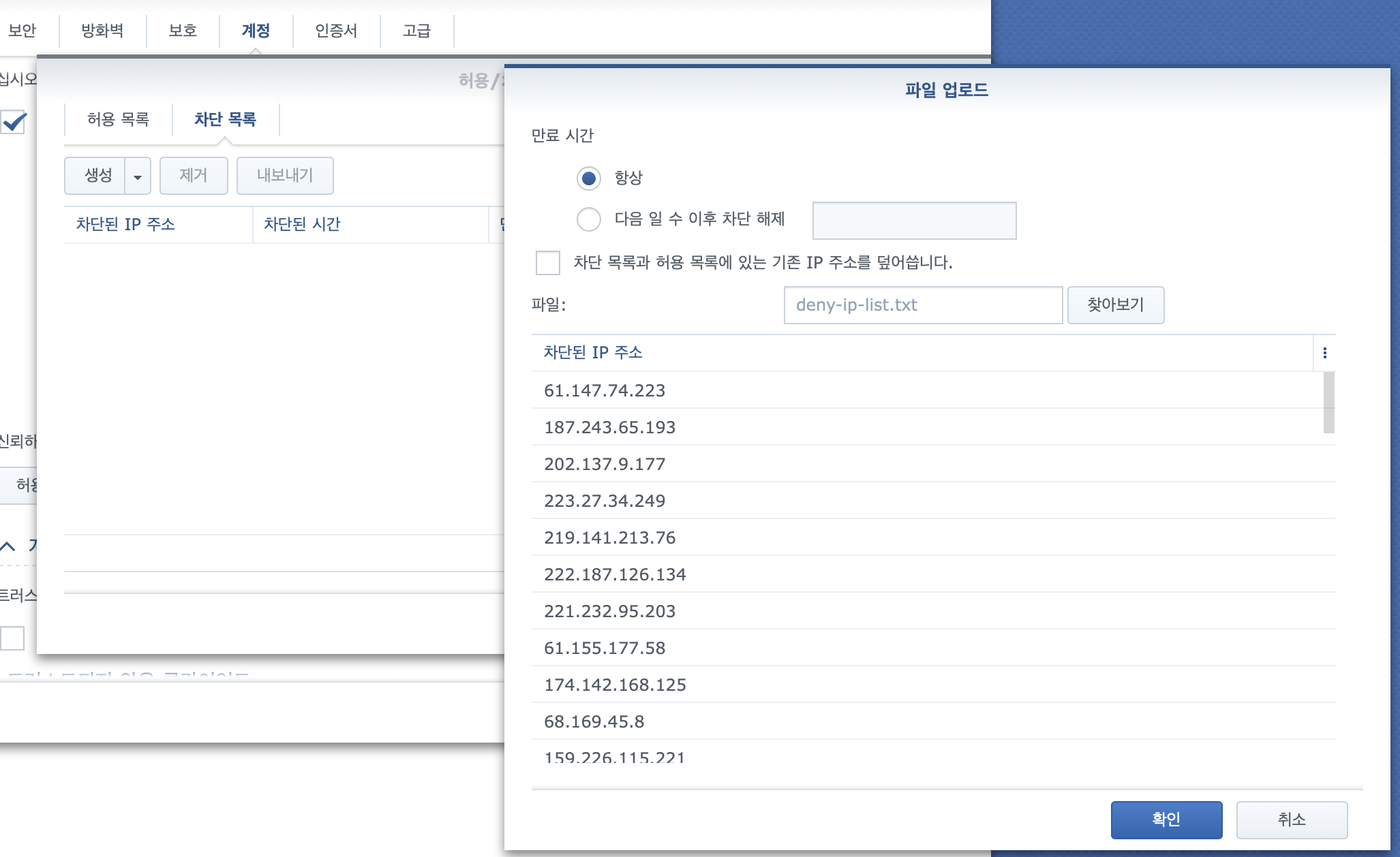 2011년부터 쌓아왔던 평생 IP 차단 목록 등을 백업한 후. (아래)