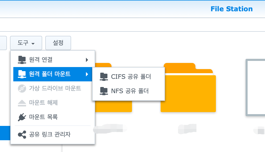 1513+의 데이터를 CIFS로 연결해 가져오는 동안. (아래)