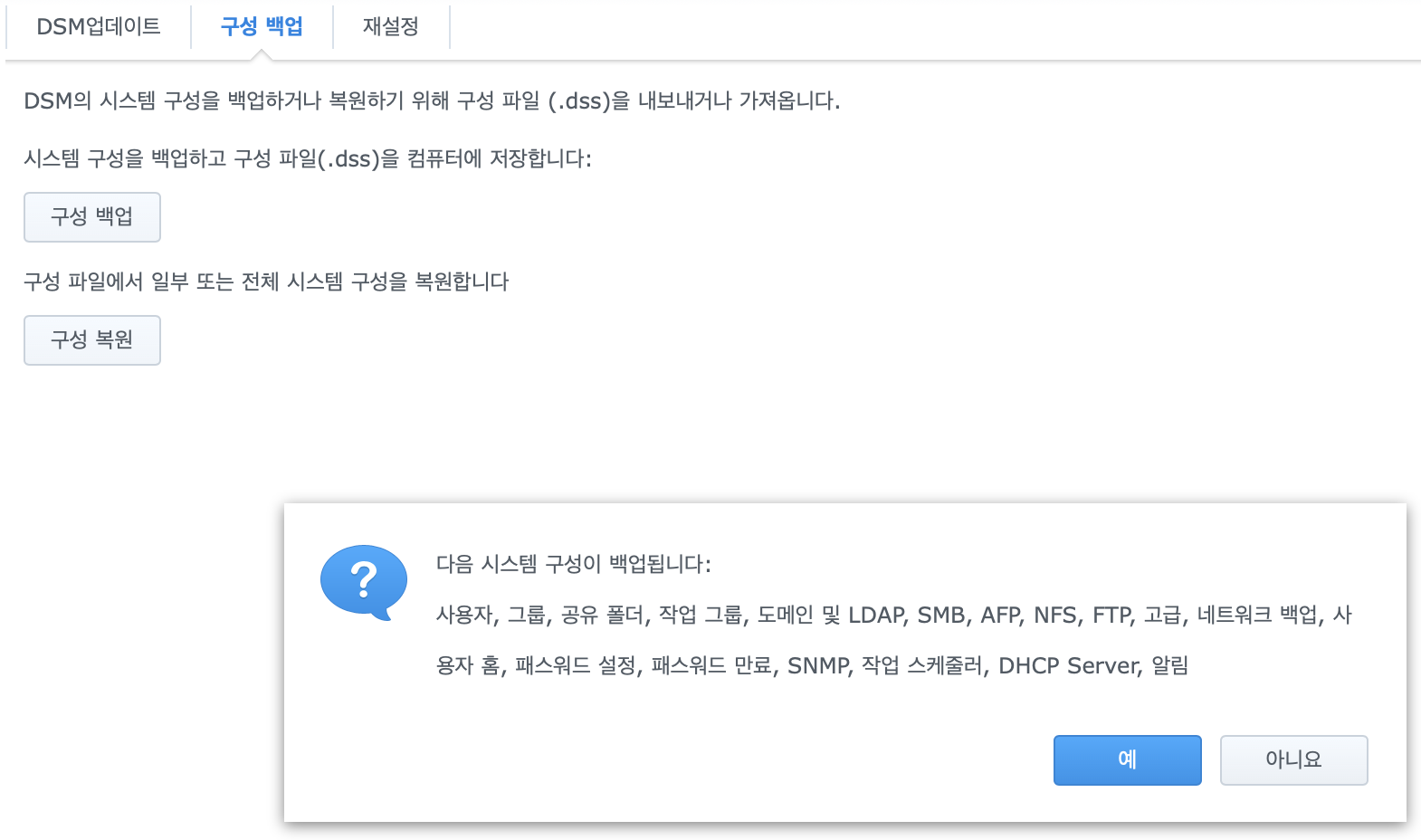 세팅 (3/4) - 구성 백업 및 복원.