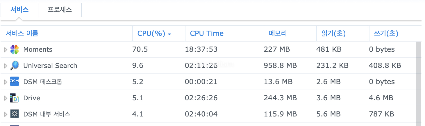 CPU가 99% 풀로드를 향해 달려가도 DSM 접속 문제는 없었지만.