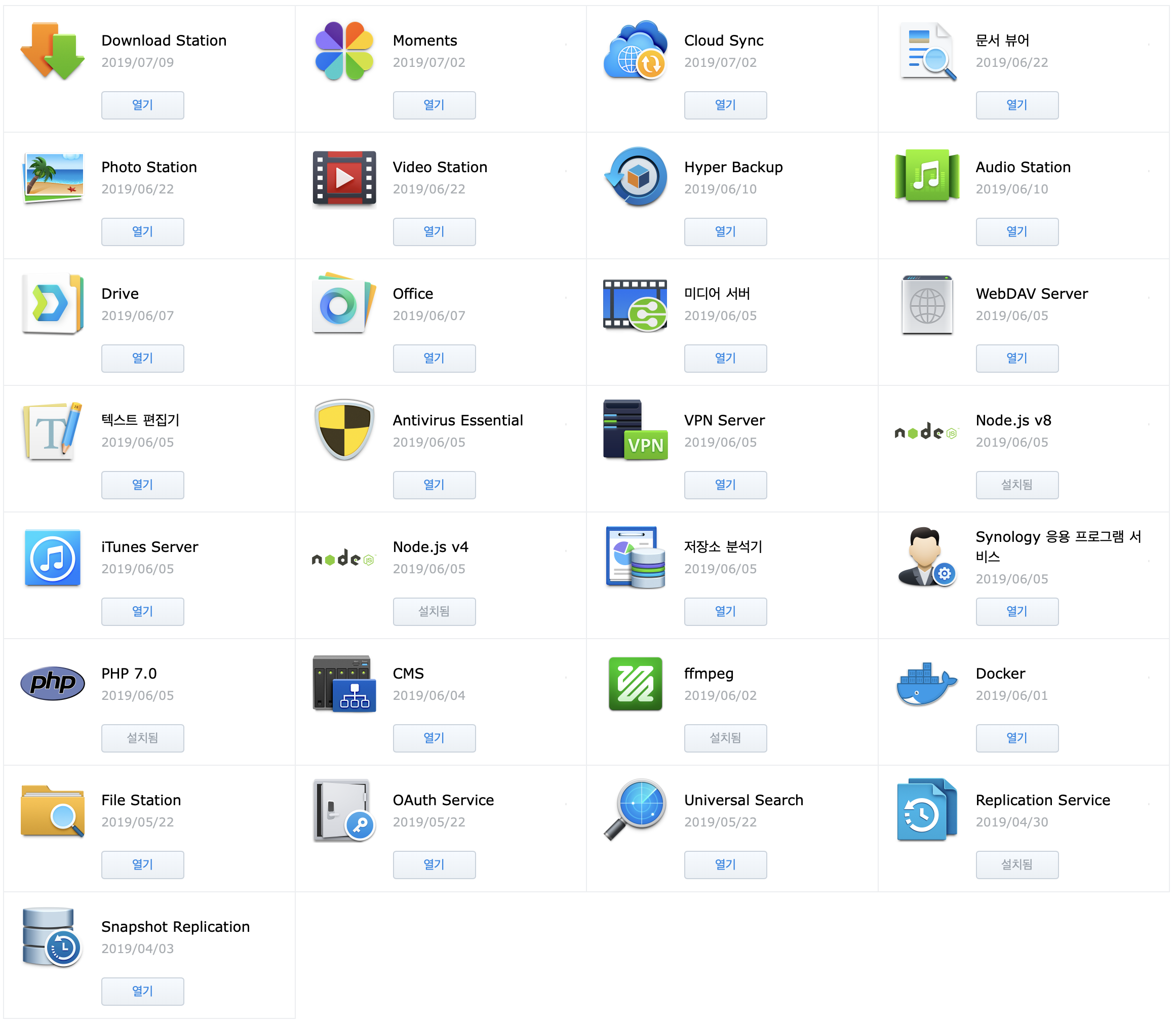 포토 스테이션(Photo Station) 활용과 중복된다고 착각해서 지웠던 모멘트(Moments) 재설치.