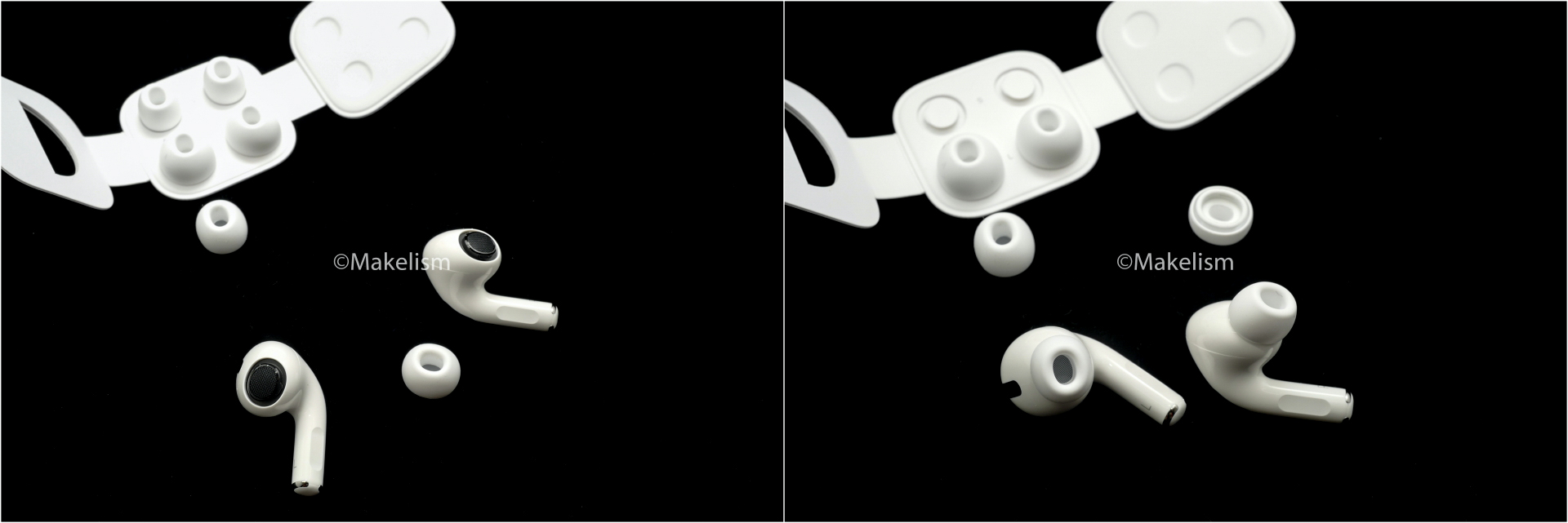 이어팁 M 사이즈가 달린 에어팟 프로 및 케이스. (아래)