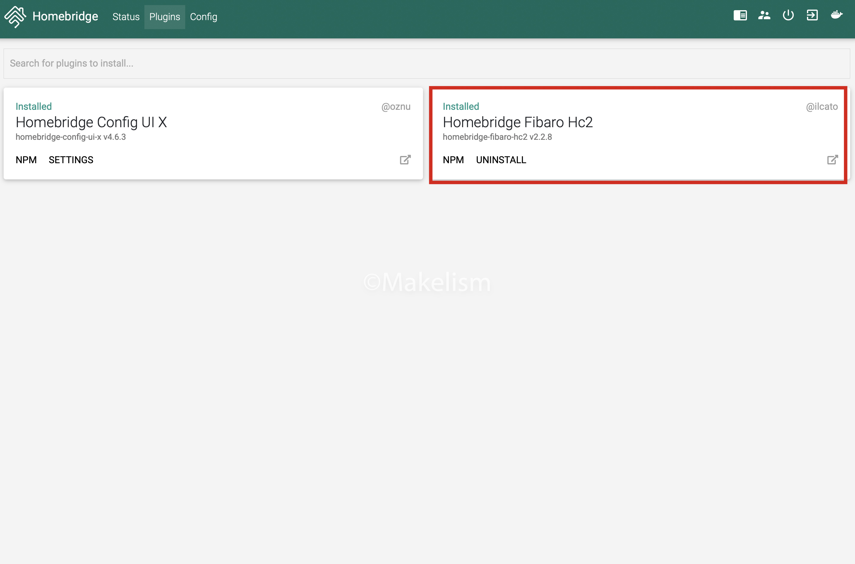 UI 화면의 Plugins에서 Fibaro를 찾아 설치하면 된다.