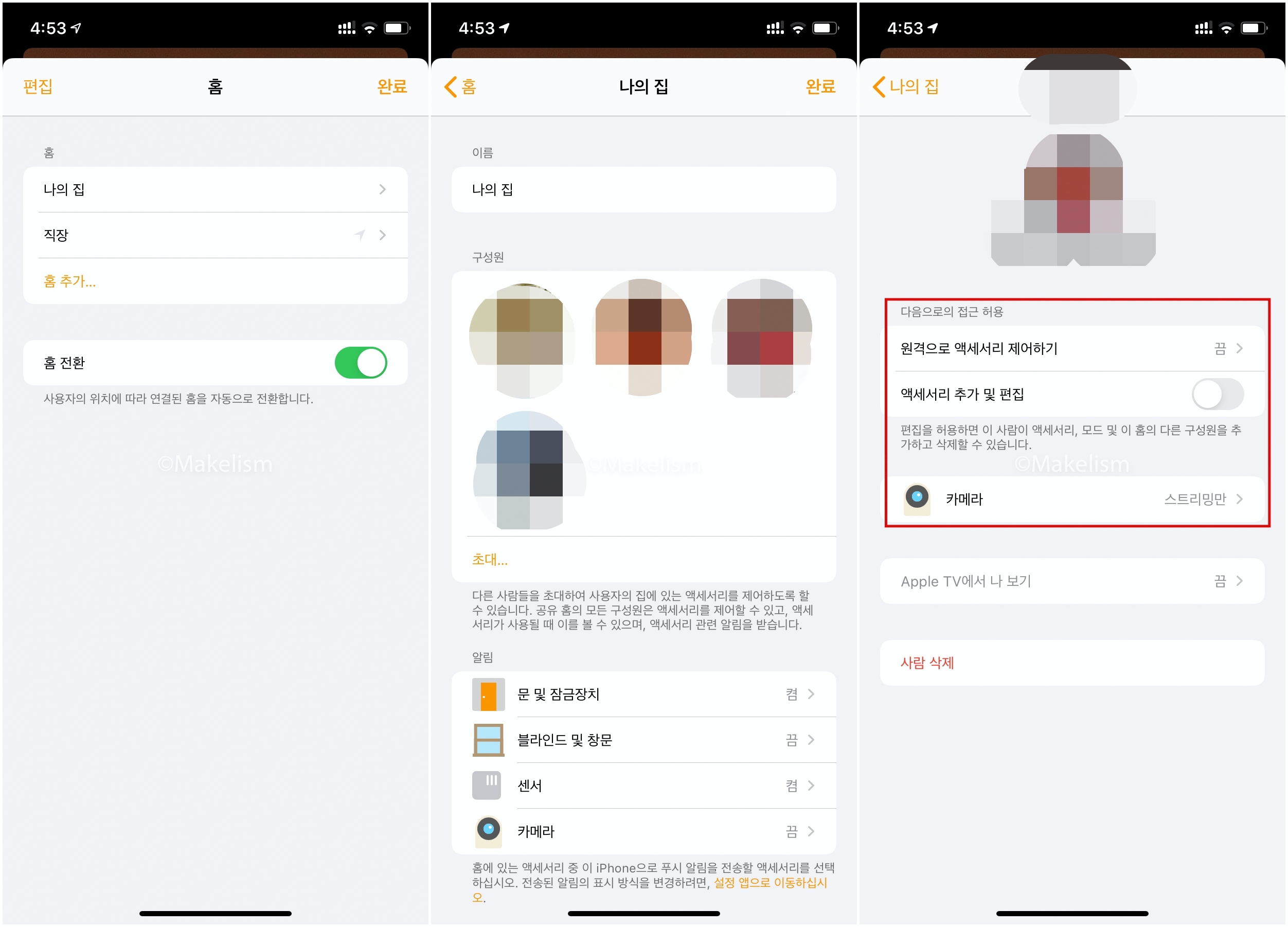 사용자에 따라 홈앱 장치 권한을 다르게 할당할 수 있다.