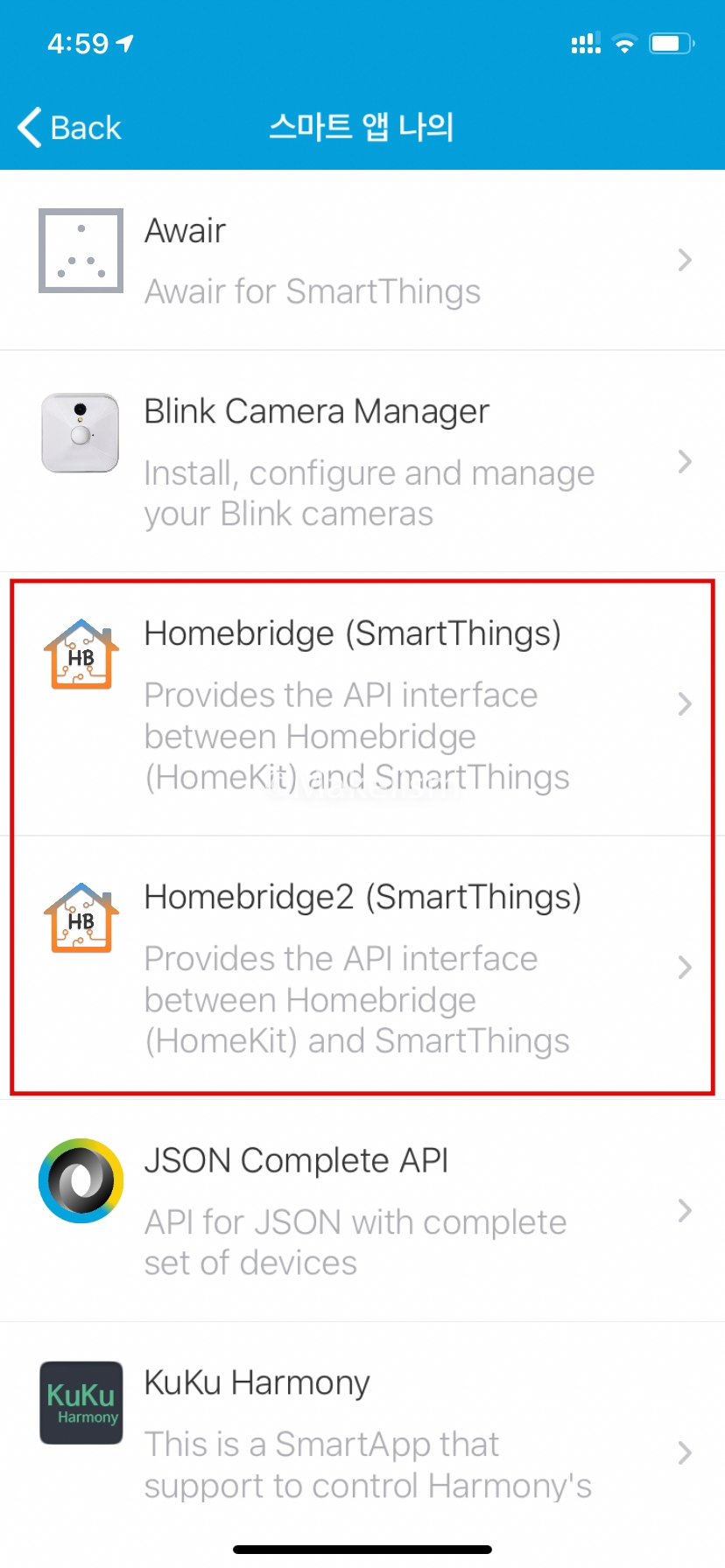 홈브리지 스마트앱을 복사한 후. (아래)