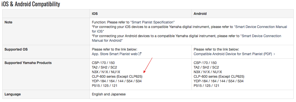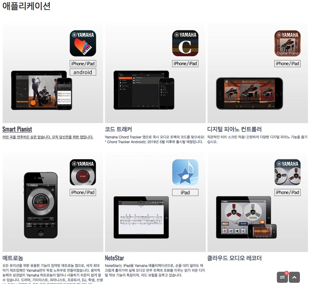 IOS, 안드로이드에서 지원하는 다양한 야마하 앱들의. (아래)