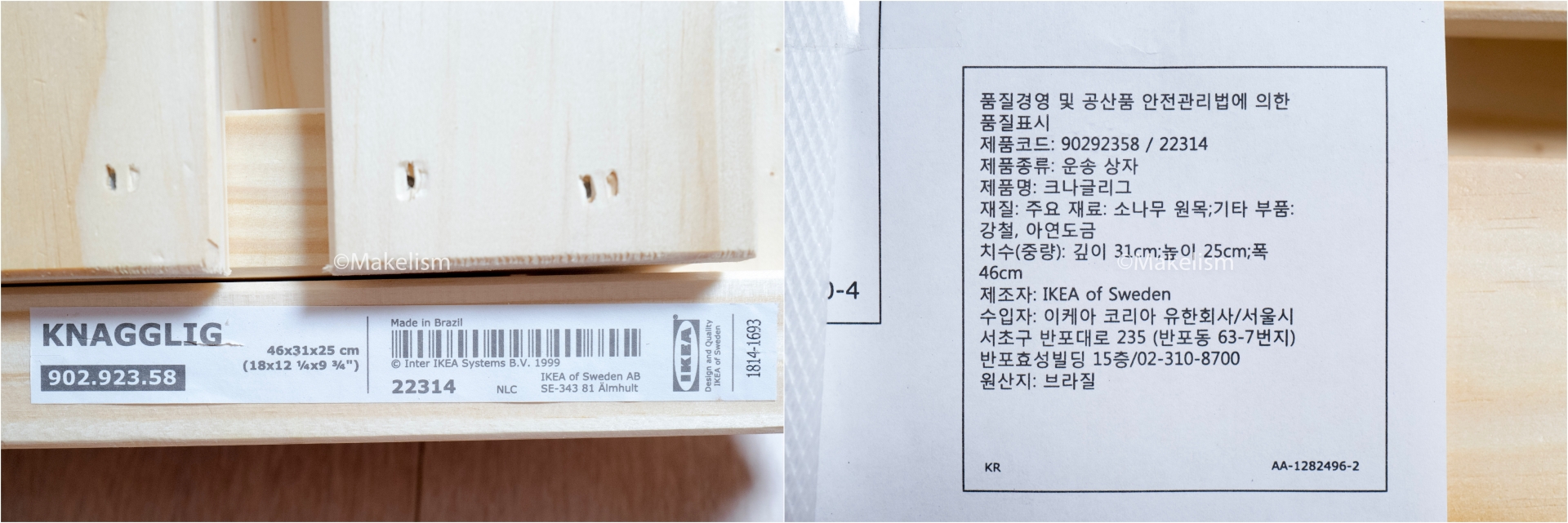 이케아 KNAGGLIG 원목 정리 수납함 대형 (902.923.48).