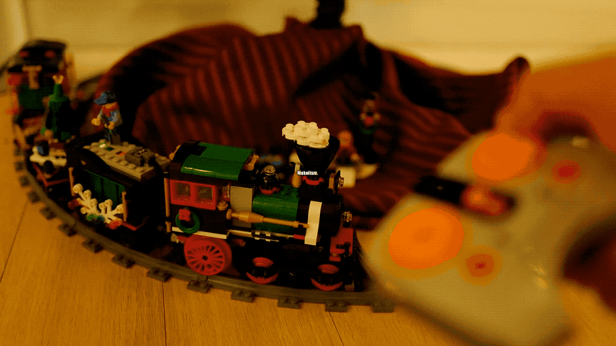 기차 위 크리스마스트리 레고를 돌리는 감격스러운 모습이 보이더라. (아래)