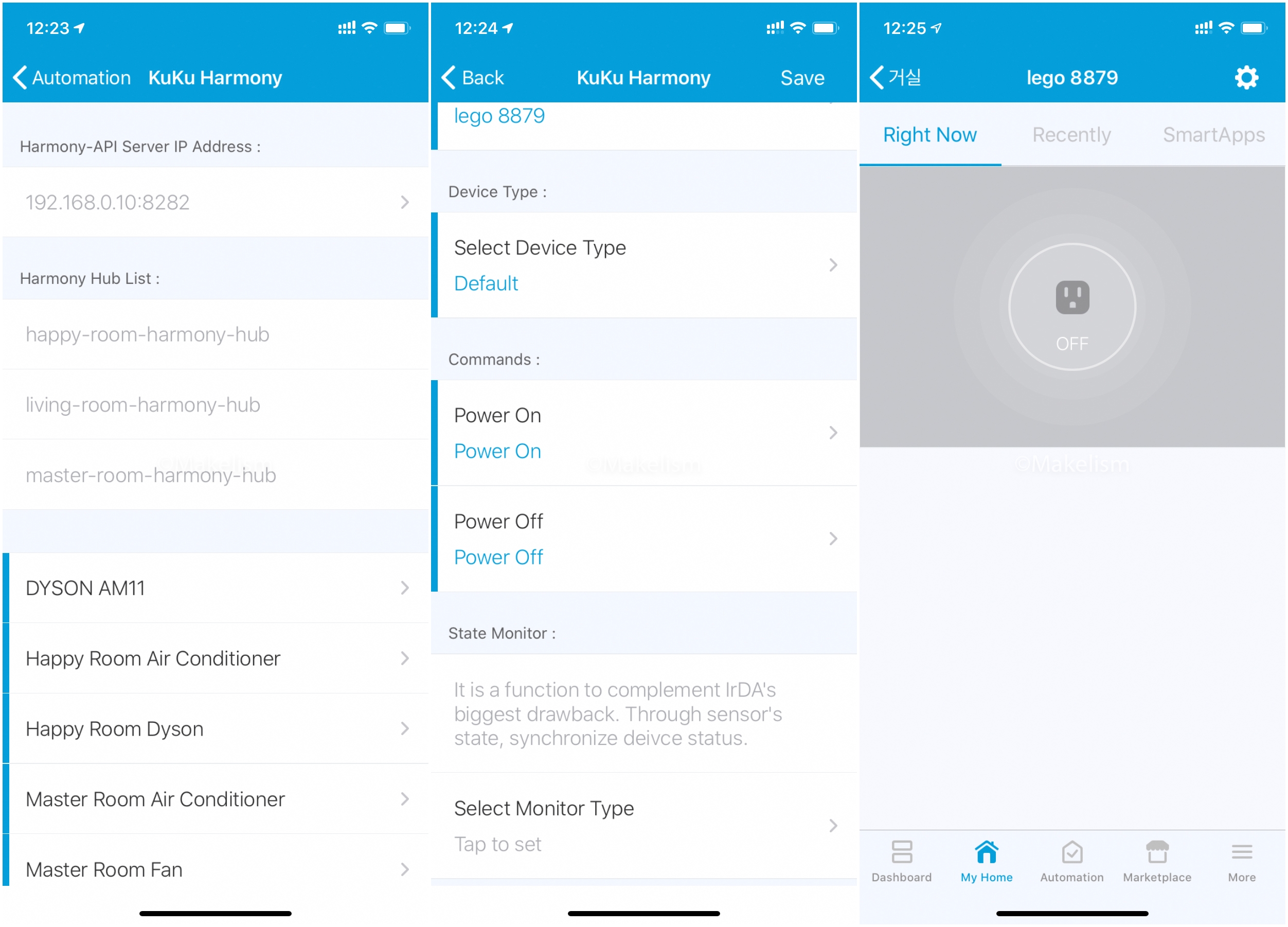 스마트싱스의 KuKu Harmony로 연동시켜. (아래)