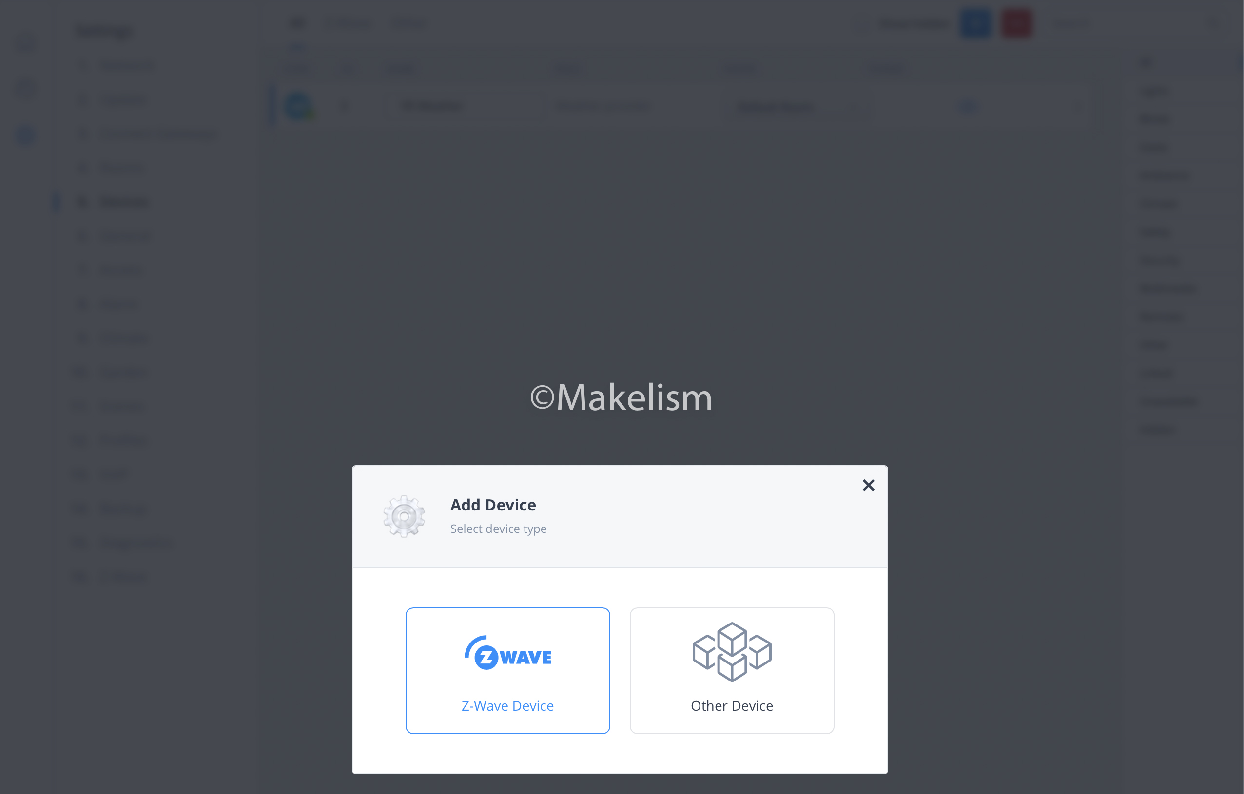 피바로 모션 센서의 통신 규격인 'Z-Wave Device' 선택. (아래)