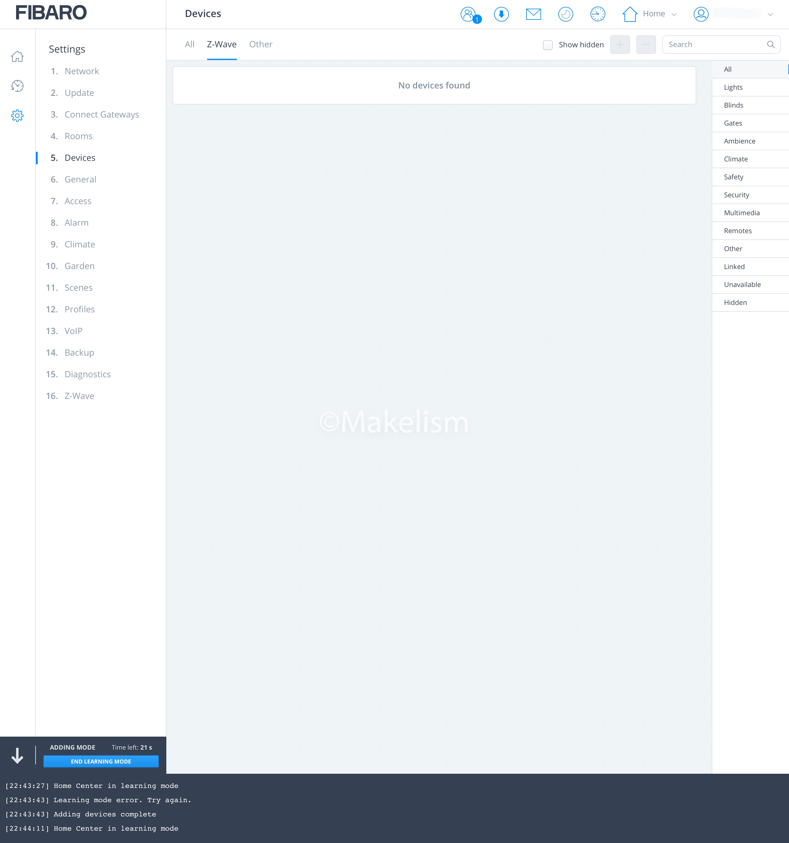피바로 홈센터 (Fibaro HomeCenter) 3 - 4. 세팅. (3) (끝)
