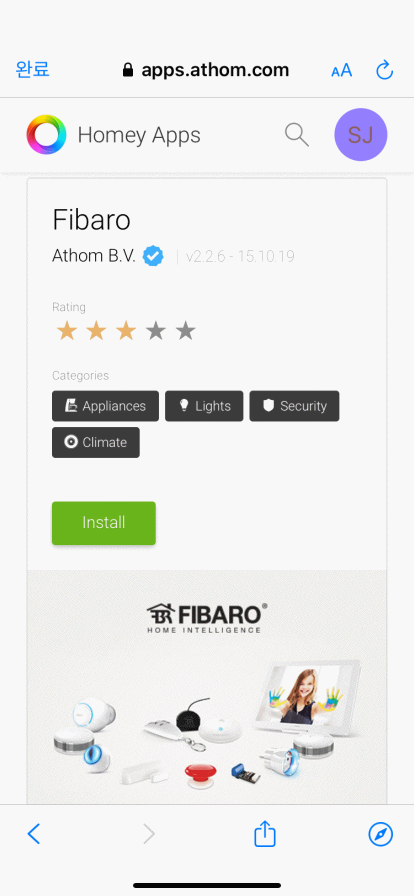 피바로(Fibaro) 홈미 앱을 설치하고. (아래)