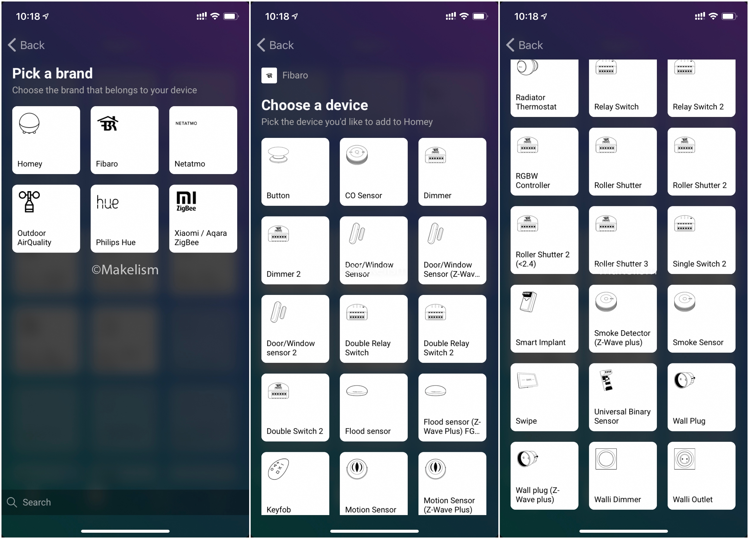 Fibaro를 누르면 나오는 장치 목록 중.