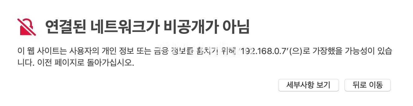 '연결된 네트워크가 비공개가 아님'의 인증서 문제는. (아래)