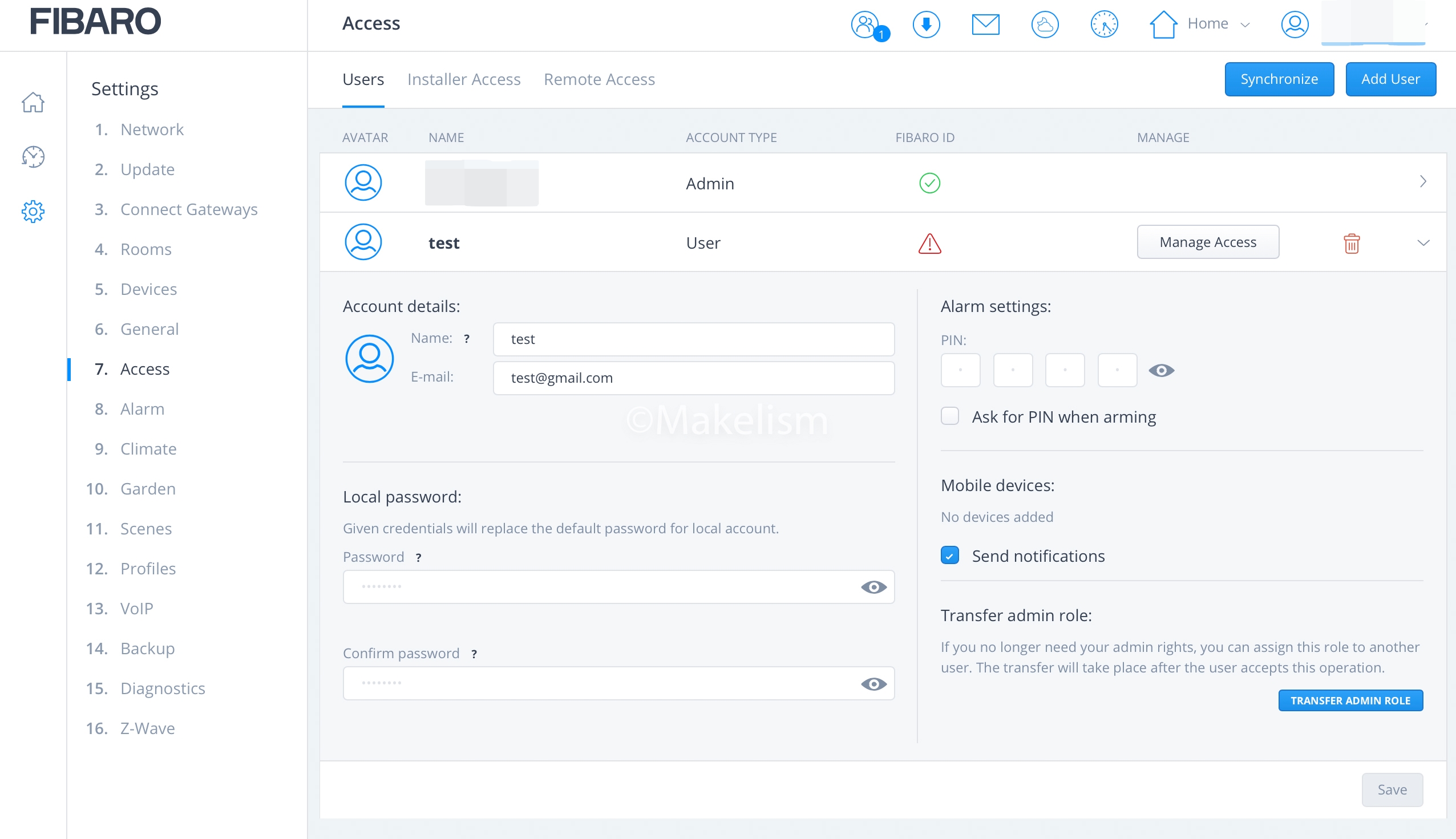 홈센터2에서 슈퍼유저(Superuser)라 불리는 관리자 권한을 넘겨줄 수 있고. (아래)