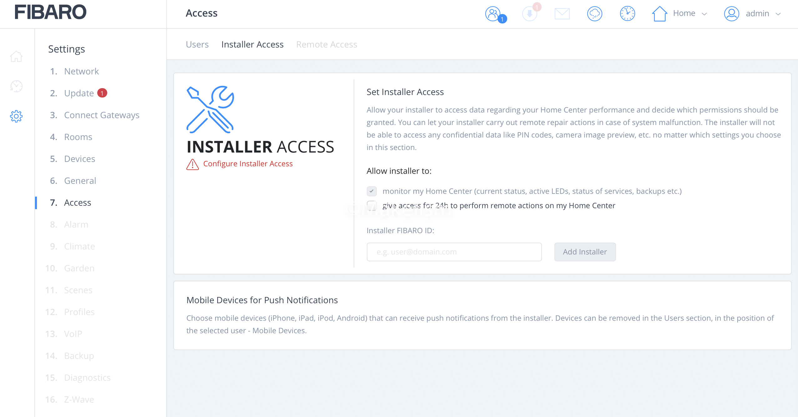 홈센터 오너가 인스톨러의 접근 범위를 정하는.