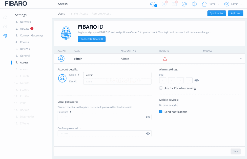 'Connect to Fibaro ID'를 클릭해. (아래)