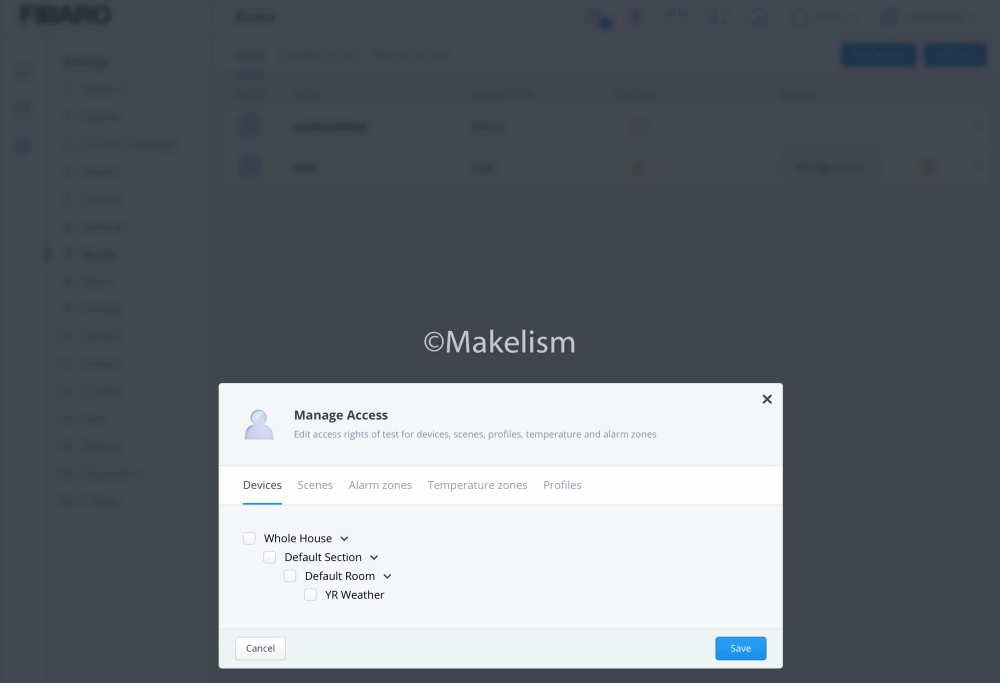 장치, 씬(Scenes) 등의 권한을 자세하게 설정할 수 있어. (아래)