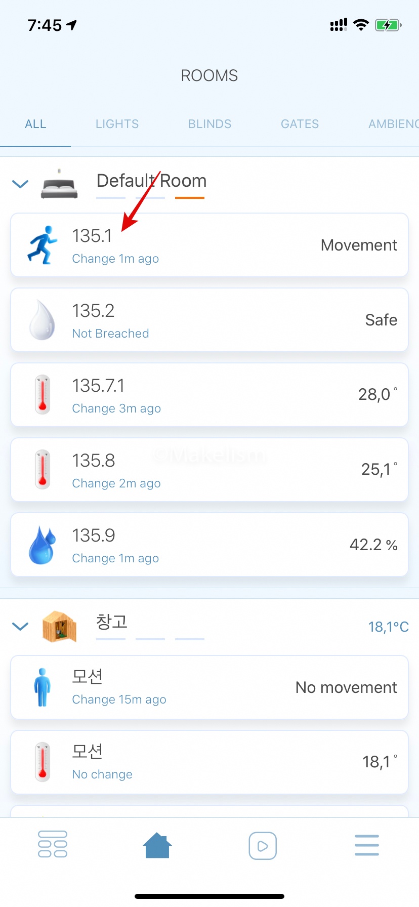 다른(허접해 보이는) 모션 센서에. (아래)