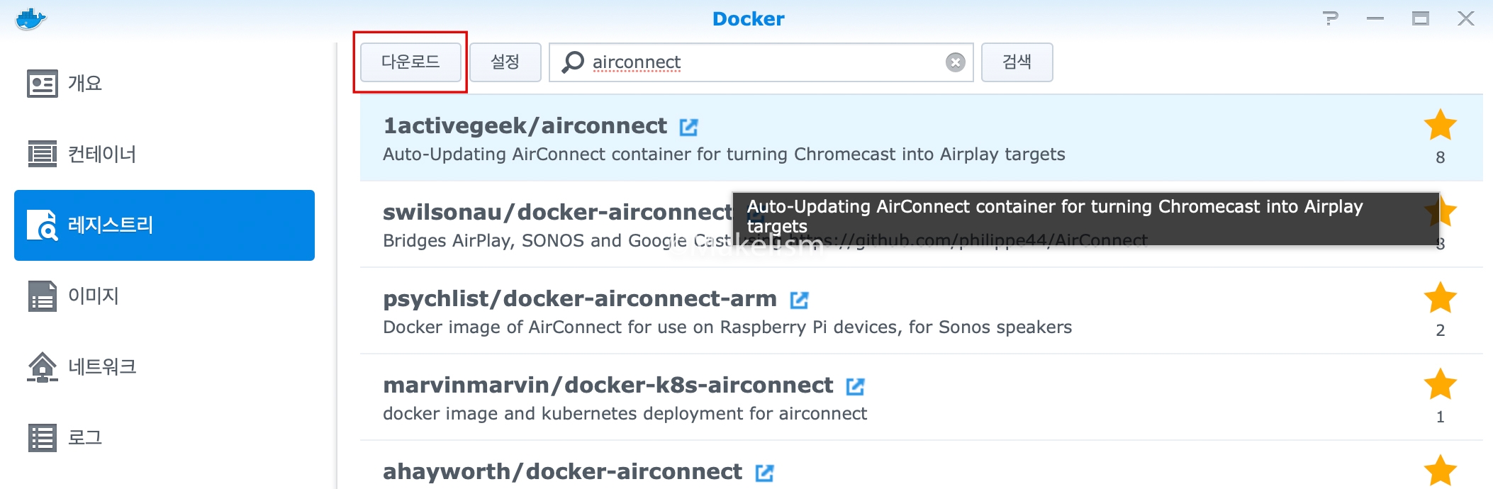 도커에서 AirConnect 설치.