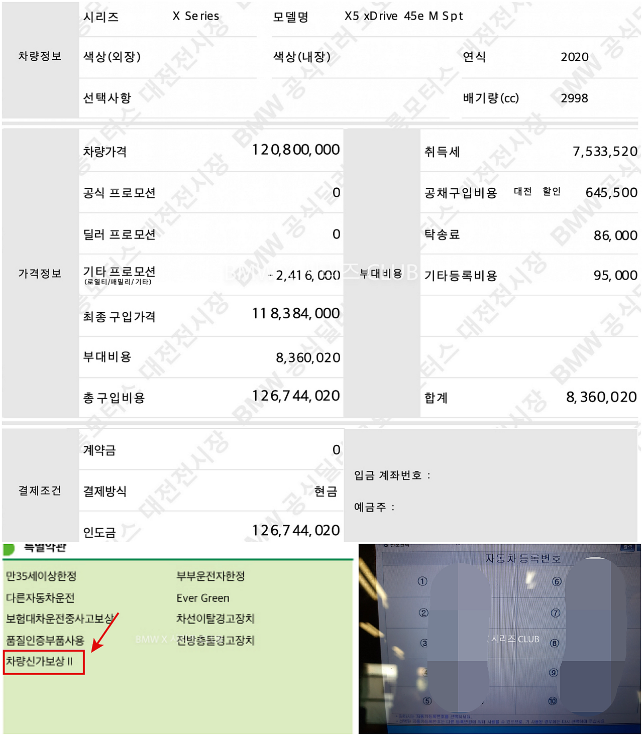 X5 45e M Spt 화이트, 블랙 사파이어 두 대를 계약했는데