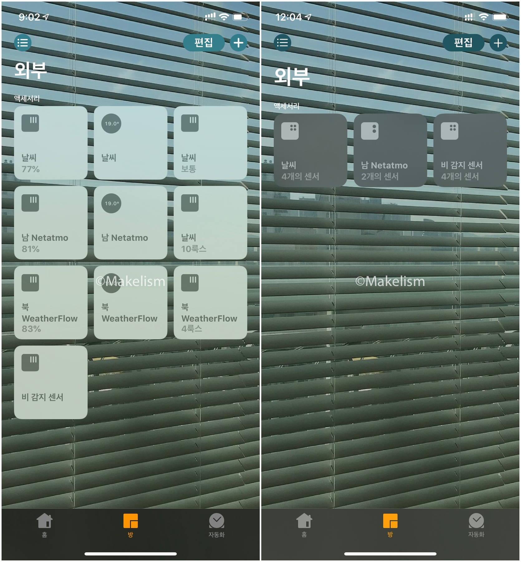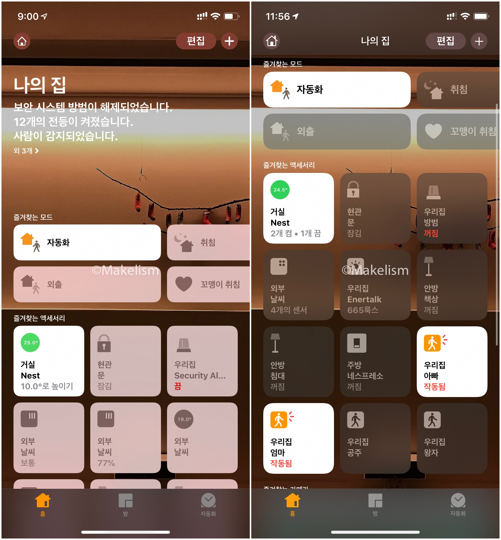 단순화되어 장치 개수가 줄어든 홈앱을 보고.