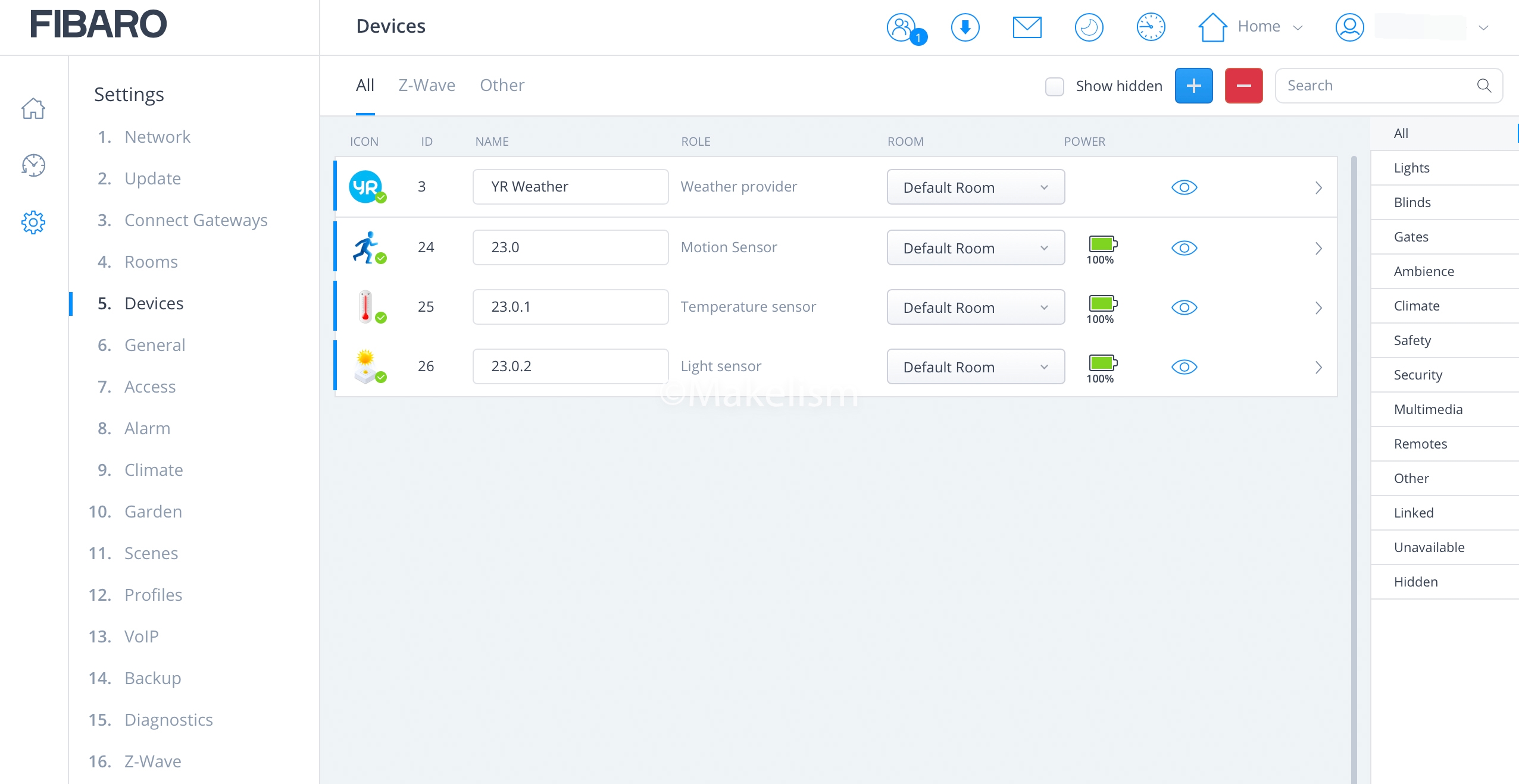 피바로 홈센터 (Fibaro HomeCenter) 3 - 2. 세팅. (1)